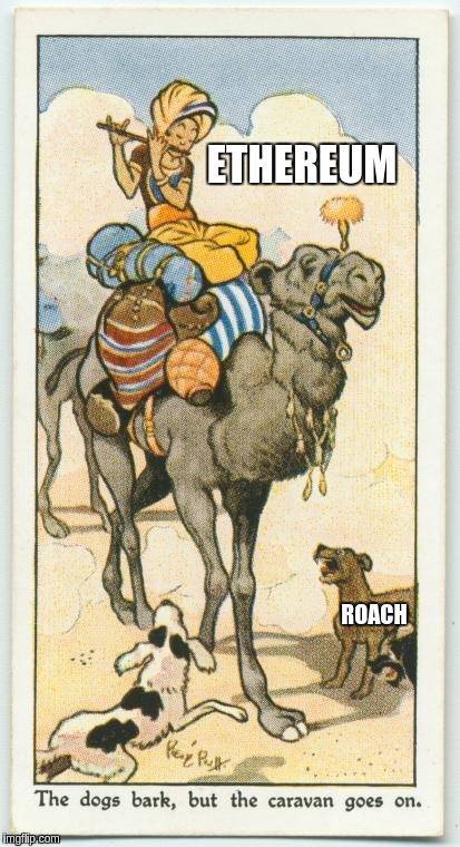 (adopted from Joseph Needham :D ) Title: Re: Vitalik scamming live on camera Post by: Minecache on June 02, 2016, 11:36:12 PM The cockroaches may bark but the caravan moves on... Cool imagine. The cockroaches may scuttle but Ethereum keeps rising. (adopted from Joseph Needham :D ) Title: Re: Vitalik scamming live on camera Post by: brekyrself on June 03, 2016, 12:08:08 AM Many comments from the peanut gallery but can anyone actually disprove what r0ach has mentioned about Proof of Stake etc...?