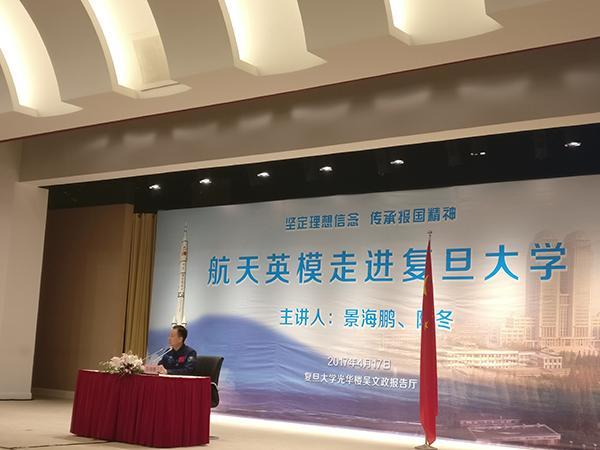 4月17日下午,景海鹏向复旦师生作报告。澎湃新闻记者 周航 图 “爽不爽?” “哇!很漂亮!” “我问你爽不爽?” “爽!” 4月17日下午,神州十一号航天员景海鹏和陈冬走进复旦大学,为该校师生作报告时,首次现场还原了这段曾广泛流传的舱内“私房话”。 2016年10月17日神舟十一号发射后,整流罩刚打开,景海鹏和陈冬在航天舱内进行了上述对话。 “非常自然的对话,没有经过编排。”景海鹏在当天的演讲中回忆,当时他怕陈冬紧张,就让他透过舷窗看看美丽的地球,没想到对话后来会在网络走红。 对陈冬来说,景海鹏是不折不扣的“老前辈”。他是中国迄今唯一一位“三度飞天”的航天员,参加了神舟七号、神舟九号和神舟十一号的载人航天任务。事后,当上述对话流传开来时,也让普通民众感受到了景海鹏的自信和成熟。 4月17日下午,长达三个小时的报告里,景海鹏向复旦师生回顾了自己的人生经历。颇为巧合的是,演讲当日距离神舟十一号升天恰好过去半年。 “人生每个阶段都有大小不同的梦想,串起了一辈子。”在演讲的开始,景海鹏回忆了自己清贫的童年和中学时光,他说,自己小时候没想过当飞行员,而是有一个篮球梦,直到高中的某天,回教室途中,他不经意看到报刊栏的一则报道,才点燃了“航天梦”。 报道中的一幅照片吸引了他的注意力,飞机边上站着飞行员,戴着钢头盔,腰上挂着枪,格外神气。让景海鹏记忆深刻的是,这个成功处置紧急状况,安全降落的英雄飞行员,叫张海鹏,和他的名字非常接近。 随后,景海鹏报考了飞行员,并一步步成为航天员,三度上天飞行。其中的艰辛和抉择,景海鹏也在演讲中一一道来。 “第一次飞天任务后,很多媒体问,你还要上天吗?”景海鹏回忆,他当时都没有回答,但实际上,回来不久他就开始了新的备战,还在训练中主动加码。 神舟九号要求航天员在太空完成手控交互对接,景海鹏给自己定了规矩,每天训练不管再累,每晚都要在桌面模拟器上训练至少一个小时,每个周末要用半天在桌面模拟器训练。 作为中国第二批航天员中首个飞天者,陈冬也经历了艰辛而繁复的训练。他回忆,自己有一年半时间没有走出航天城,每两周有一次考试,上课丝毫不得马虎,他抹着风油精,和战友相互提醒。 2010年时,每次他从教室下楼透透气,总能看到楼上一盏灯亮着——那正是师兄景海鹏在备战神舟九号飞行任务。“当时对我的启发非常大,给了我力量,是我的榜样。”陈冬说。 景海鹏说,他将神舟七号首次上天,视作完成梦想,而神舟九号再度上天,则是超越梦想。到了神舟十一号,则是升华理想。 “机会留给有准备的人。”演讲的最后,景海鹏告诉复旦学子,要懂得感恩,也要不浮躁,踏踏实实完成一个个目标,最后则是绝不松懈,始终坚持自己的目标前行。 当天,复旦大学光华楼吴文正报告厅座无虚席,景海鹏和陈冬的演讲十数次被掌声打断。 Title: Re: 景海鹏、陈冬复旦演讲十数次被掌声打断 还原舱内对话 Post by: 111Luqmany on April 18, 2017, 01:08:19 PM 复旦大学光华楼吴文正报告厅座无虚席,景海鹏和陈冬的演讲十数次被掌声打断