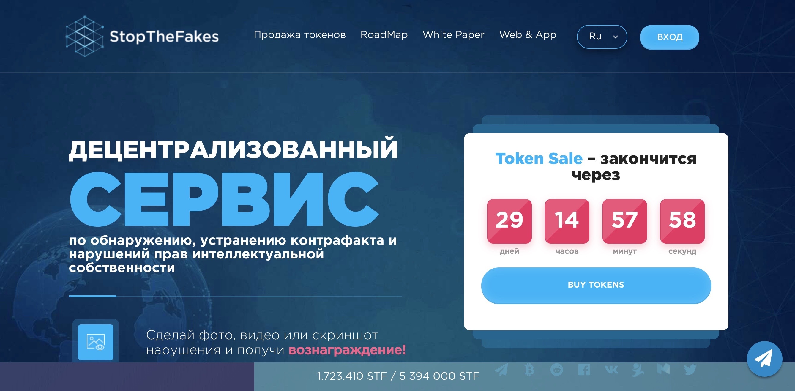 Жаль вот поздно присоединился.Остаётся теперь только наблюдать куда эта кривая выведет ;) Надеюсь не ошибся с выбором,что присоединился к Вам ::) Title: Re: 🚀🌟🌟 [ICO][Bounty] 🌟🌟🚀 StopTheFakes.io $ 1.000.000 $ Баунти Кампания Post by: apoloo on January 08, 2018, 02:16:18 PM Неплохой проект с интересной идеей 8) Почему же поздно?Жаль вот поздно присоединился.Остаётся теперь только наблюдать куда эта кривая выведет ;) Надеюсь не ошибся с выбором,что присоединился к Вам ::) В самый раз. Баунти в самом разгаре. Спасибо за Вашу поддержку! Title: Re: 🚀🌟🌟 [ICO][Bounty] 🌟🌟🚀 StopTheFakes.io $ 1.000.000 $ Баунти Кампания Post by: Olegryz on January 10, 2018, 04:56:13 PM Я чего то не пойму! Pre-ICO начинается 21 января, а в таблицах уже стейки и токены посчитаны?! Хочу поучаствовать и не пойму куда регистрироваться, в эти же таблицы или новые будут? Или вообще баунти закрыта? Title: Re: 🚀🌟🌟 [ICO][Bounty] 🌟🌟🚀 StopTheFakes.io $ 1.000.000 $ Баунти Кампания Post by: despondency on January 10, 2018, 06:02:03 PM Я чего то не пойму! Pre-ICO начинается 21 января, а в таблицах уже стейки и токены посчитаны?! Хочу поучаствовать и не пойму куда регистрироваться, в эти же таблицы или новые будут? Или вообще баунти закрыта? Title: Re: 🚀🌟🌟 [ICO][Bounty] 🌟🌟🚀 StopTheFakes.io $ 1.000.000 $ Баунти Кампания Post by: Olegryz on January 10, 2018, 07:16:58 PM Я чего то не пойму! Pre-ICO начинается 21 января, а в таблицах уже стейки и токены посчитаны?! Хочу поучаствовать и не пойму куда регистрироваться, в эти же таблицы или новые будут? Или вообще баунти закрыта? Так там уже черта подведена внизу и итоговые цифры выведены по всей таблице и по Фейсбуку и по Твиттеру, подписной... Хотя может вы и правы, буду регистрироваться, а там выясню... Title: Re: 🚀🌟🌟 [ICO][Bounty] 🌟🌟🚀 StopTheFakes.io $ 1.000.000 $ Баунти Кампания Post by: haronov on January 10, 2018, 10:40:48 PM Проект нацелен на борьбу с пиратством не только через интернет, больше всего привычней фильмы, музыка, но и с в реальной жизни, т е борьбу с поделкой лекарств или продукции?