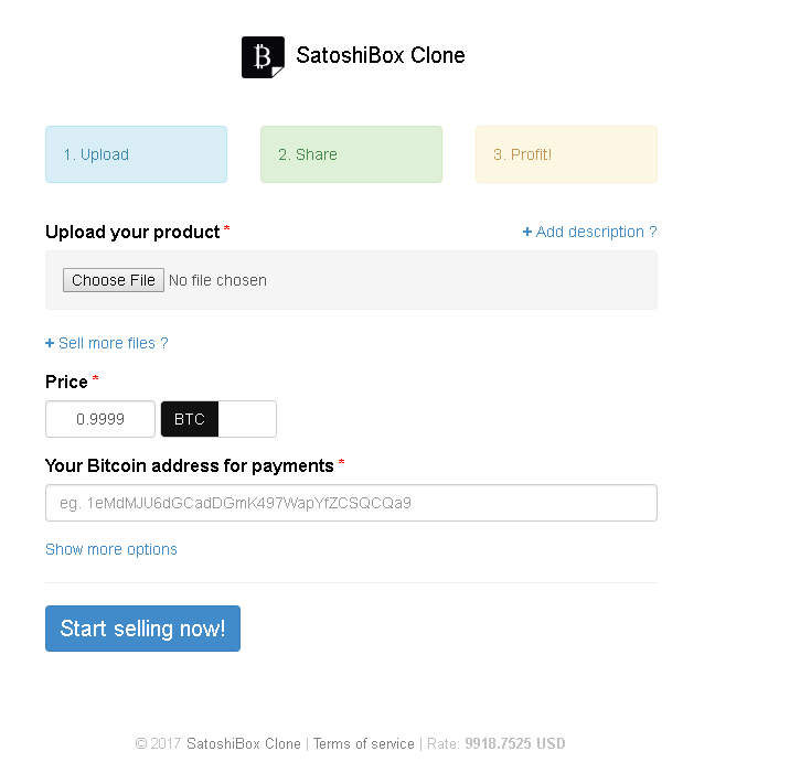 Title: [FREE INSTALL] Satoshibox.com Clone Full Source code and custum work Post by: wasubii on November 27, 2017, 11:23:03 AM I am selling full source code for SatoshiBox Clone ! This is the real thread for this script. Launch your own service online ! https://i.gyazo.com/132cca8016e81de2e8297bf0b73c55bd.png Features: - Sell multiple files at once - Choose number of time you will sell your product - Expiration of the product (Hour, Day, Week, Month) - Add Password to your product in order to remove it anytime your want - Set BTC or USD price for your product - Add description for it (Optional) - Choose fees to take for each order (Pourcent %) Admin Panel to manage products: - You can check any product you want from Admin Panel using Product ID - Download or Delete any product - Statistics - Get list of all the products uploaded Check an online demo from here: http://www.progweb.info/satoshibox/ Admin Demo: http://www.progweb.info/satoshibox/admin.php Coded with; PHP / MySQLi / JQuery / Javascript / CSS3 With Custom Work: - Configuration and installation on the server - Integrate Ethereum (Optional) / Altecoin Can be purchased here https://coingate.com/pay/Satoshibox FREE INSTALLATION GUIDE. https://i.gyazo.com/953f1143b97e9b9e75eed0368f57db5f.png Title: Re: [FREE INSTALL] Satoshibox.com Clone Full Source code and custum work Post by: wasubii on December 07, 2017, 09:47:14 PM Still available. Buy now and let me install it, if you don't know how to do it. |