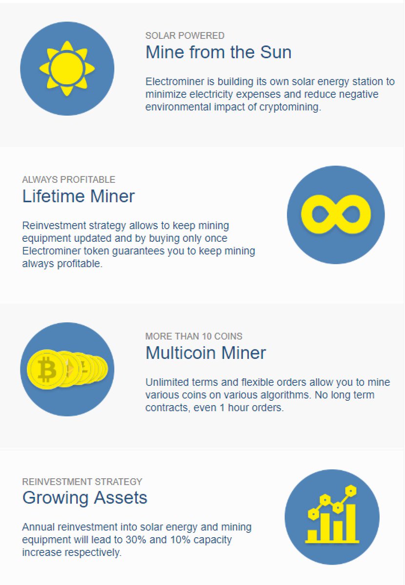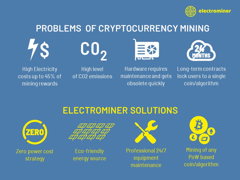 सभी को नमस्कार! यह Electrominer द्वारा आयोजित आगामी टोकन बिक्री इवेंट के लिए एक घोषणा है - नवीकरणीय ऊर्जा द्वारा संचालित एक क्लाउड माइनिंग मंच जहां उपयोगकर्ताओं को विभिन्न एल्गोरिदम पर बिटकॉइन और अन्य PoW-आधारित अल्टकॉइन माइनिंग के लिए Hashing Power किराए पर लेने का अवसर मिलेगा। हम अपने स्वयं के सौर ऊर्जा स्टेशन द्वारा संचालित अत्याधुनिक माइनिंग उपकरण के साथ टिकाऊ, अत्याधुनिक मोबाइल डाटा सेंटर सुविधाओं का निर्माण कर रहे हैं। हम हमारी माइनिंग सुविधाओं को इंपीरियल काउंटी, कैलिफोर्निया में बनाने की योजना बना रहे हैं। स्वच्छ ऊर्जा उत्पादन