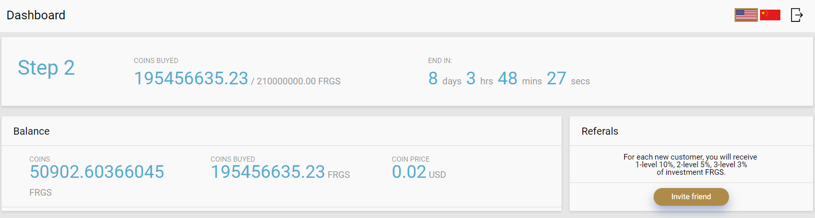 Hello! To get the FRGS bonus you need to use your personal account: 🎁🎁🎁🎁🎁🎁🎁🎁🎁🎁🎁🎁🎁🎁🎁 https://ico.fargocash.io/login (https://ico.fargocash.io/login) ahhh! The withdrawal of coins can be made on a web wallet http://fargocash.org (http://fargocash.org) or download and install it from the official site https://fargocash.io/#WALLETS (https://fargocash.io/#WALLETS) 🚀🚀🚀🚀🚀🚀🚀🚀🚀🚀🚀🚀🚀🚀🚀 Participants of the FARGOCASH project will receive their coins during 2-3 weeks. Title: Re: ⚡⚡⚡[BOUNTY]✅FARGOCASH✅ICO✅MULTU-CRYPTO CURRENCY PLATFORM⚡⚡⚡ Post by: BITpashaCOIN on April 03, 2019, 08:19:50 PM Hello. Coins per bounty will be credited later. So bounty FRGS will be available to withdraw only after 31.03.2019 Hi, I open my personal account - there only 100 coins, what is it? When will be bounty campaign payment?Title: Re: ⚡⚡⚡[BOUNTY]✅FARGOCASH✅ICO✅MULTU-CRYPTO CURRENCY PLATFORM⚡⚡⚡ Post by: FargoCash on April 04, 2019, 05:13:32 AM Hello. Coins per bounty will be credited later. So bounty FRGS will be available to withdraw only after 31.03.2019 Hi, I open my personal account - there only 100 coins, what is it? When will be bounty campaign payment?Hello. Participants of the FARGOCASH project will receive their coins during 2-3 weeks. Title: Re: ⚡⚡⚡[BOUNTY]✅FARGOCASH✅ICO✅MULTU-CRYPTO CURRENCY PLATFORM⚡⚡⚡ Post by: BITpashaCOIN on April 08, 2019, 12:05:34 AM Hello. Coins per bounty will be credited later. So bounty FRGS will be available to withdraw only after 31.03.2019 Hi, I open my personal account - there only 100 coins, what is it? When will be bounty campaign payment?Hello. Participants of the FARGOCASH project will receive their coins during 2-3 weeks. Title: Re: ⚡⚡⚡[BOUNTY]✅FARGOCASH✅ICO✅MULTU-CRYPTO CURRENCY PLATFORM⚡⚡⚡ Post by: FargoCash on April 08, 2019, 01:17:29 PM I'm glad to hear that, to be honest, I thought you'd forgotten about us. Will the bounty campaign continue - second round?