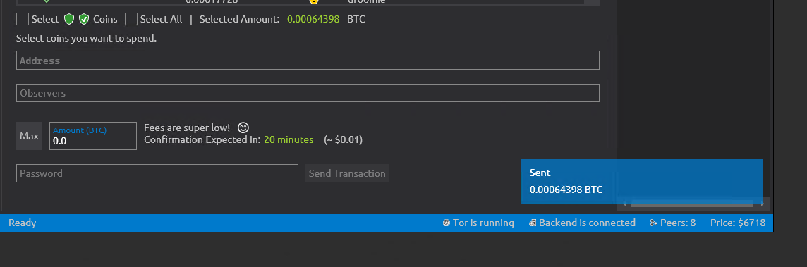 https://media.discordapp.net/attachments/403714420791967747/509645930673209345/unknown.png Title: Re: Wasabi Wallet 1.0 Is Released Post by: bob123 on November 07, 2018, 08:41:45 AM What does 0.1 btc minimum mean? Does it mean I must have a minimum of 0.1BTC to participate in a coinjoin tx? This means that the input you are using to participate in the coinjoin features has to be more than 0.1 BTC. So, owning more than 0.1 BTC is not enough, you need to use/spend more than 0.1 BTC in such a transaction. Title: Re: Wasabi Wallet 1.0 Is Released Post by: HeRetiK on November 07, 2018, 10:13:55 AM I've heard about Wasabi mostly on Reddit, nice to finally see a thread about it on Bitcointalk. I was already wondering when you'd show up :)