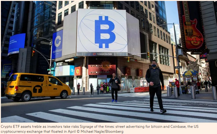 https://nypost.com/wp-content/uploads/sites/2/2021/09/satoshi-nakamoto-91.jpg Source: https://nypost.com/2021/09/17/statue-of-anonymous-bitcoin-creator-satoshi-nakamoto-unveiled-in-hungary/ Статуя в Будапеште представляет из себя бюст анонимного кодера со значком BTC на толстовке. Лицо, как говорят источники, сделано зеркальным не случайно: оно отражает лица всех смотрящих на него и символизирует, что Сатоши - это не личность отдельного человека, а всех людей, для которых биткоин представляет надежду на лучшее. В какой-то степени это правда, так как каждый человек вносит свой вклад в развитие биткоина, либо через разработку, либо поддержку, либо распространение знаний о биткоине. Title: Re: Реклама биткоина на улицах Post by: soliton on September 30, 2021, 02:10:33 PM На улице в каком-то из городов Соединённых Штатов рекламируют Coinbase и биткоин. Как свидетельствует подпись к снимку (https://www.ft.com/content/dff39335-95a2-4aee-bf0b0bfea1c05423) реклама крутилась в апреле этого года, в то время, когда ралли битка было в самом разгаре: