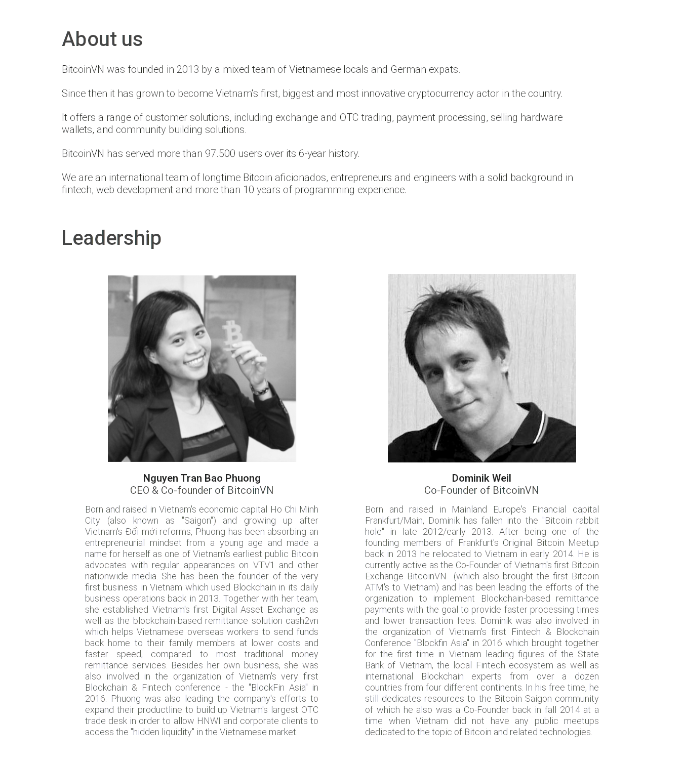 John Riggins did an interview with Dominik Weil and Bao-Phuong Nguyen to discuss the history and current state of Bitcoin in Vietnam. You can listen to the whole story in Episode 3 of the Bitcoin in Asia podcast: http://bitcoininasia.btc.libsynpro.com/bia3-bringing-bitcoin-to-vietnam-with-dominik-weil-and-bao-phuong-paige-nguyen Title: Re: Vietnamese Exchange BitcoinVN Is Seeking Investors For 12 New Bitcoin ATMs Post by: buwaytress on December 02, 2019, 12:03:42 PM Hey OP, nice to see a bit of progress from when you first posted. Glad you moved the thread here too. Which team member are you btw? Or posting on behalf of? Should get Weil or Nguyen in here too really!