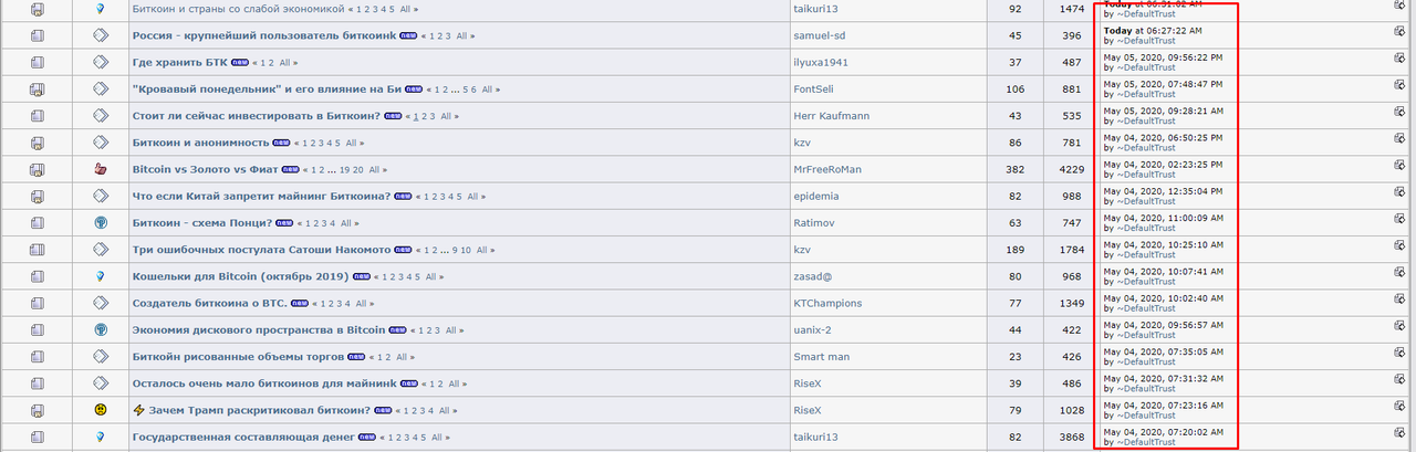 I can see some posts with less time gap between them ( mostly of some minutes ) but still I don't think that would count as post busting. I can see just two of your replies deleted recently in the modlog (https://bitcointalk.org/modlog.php). Title: Re: Please explain the ban reason Post by: suchmoon on May 07, 2020, 12:59:32 PM I have not see any logic at all. You have quite a few meaningless one-two-liners in spam megathreads. I wouldn't ban for it but I'm not a moderator. It's a temp ban, I'm sure you'll survive it. Title: Re: Please explain the ban reason Post by: Pmalek on May 07, 2020, 01:35:17 PM Obv if my posts "were of low quality" then they should by removed. But my posts was not removed but I have been banned. Looks like it is not a permanent ban. Bpip shows no info that you are banned so you probably received a 7 or 14 days temporary ban. The modlog shows that two of your recent posts have been deleted. I can't comment on your posts because I don't speak Russian. Title: Re: Please explain the ban reason Post by: ~~DefaultTrust on May 07, 2020, 05:00:35 PM Yes I know that this is a temp ban. But I think that bans should have preventive goals.