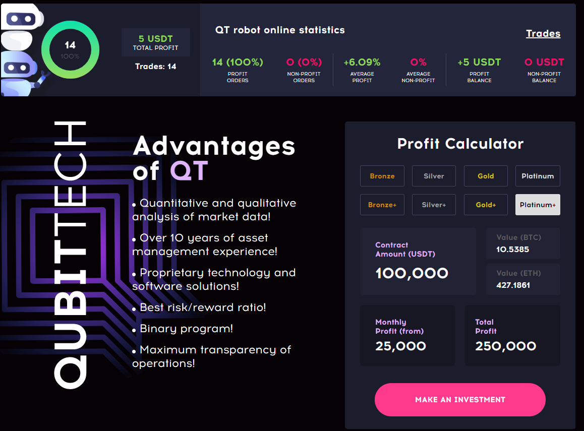 Promising daily profits by trading margin contracts 1.12% daily 25% monthly Website; https://www.qubittech.ai/ Archived; http://archive.is/usvD3 Bounty: Code: https://docs.google.com/document/d/1uo9Xypabt2C2eXFV5wxVJ-yMQ5Gb7fWliQb4w7Cb5aQ/edit# This bounty is managed by the telegram group Sofico Bounty Manager (https://t.me/SoficoBounty) https://i.gyazo.com/ec8559cdff1a884f33644f7d7ec4b59a.png Code: Registrar Namecheap https://i.gyazo.com/00827c63f507539d30017556b20dcb2d.png https://i.gyazo.com/8f2f964d230dd605c790d6d307c5af7c.png https://i.gyazo.com/347e6dc2eaf764e8bcafd5886d314cbd.png Title: Re: [WARNING] QubitTech Offering Margin trading like a ponzi scheme Post by: $crypto$ on June 17, 2020, 09:32:24 AM I think this project is exactly the same as what was captured by noorman0 (https://bitcointalk.org/index.php?action=profile;u=1360301) before it