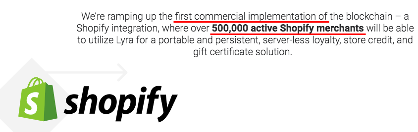 And this is not including LoyalShopper app code which is in active development (and maintained in private repository). Title: Re: [ANN] LYRA Block Lattice Post by: CaVO32 on August 04, 2020, 11:58:38 PM @OP, seems that your project needs awareness among crypto users. How soon are you going to launch your platform with this partnership with Shopify? Or are you just waiting to fully test your network with shopify? This is a big partnership if this will go smoothly. With large number of users, this partnership alone will give you good exposure in the market. If merchants will utilize your platform, focusing your market in shopify alone will make your project a hit. As one of online shoppers, it is good to see coupons or loyalty rewards in terms of cryptocurrency. And remember, ecommerce is really flourishing, not only because we are in pandemic but the convenience it brings to its consumers worldwide. So good luck to this project and I hope seeing lyra token to be successful with this journey.