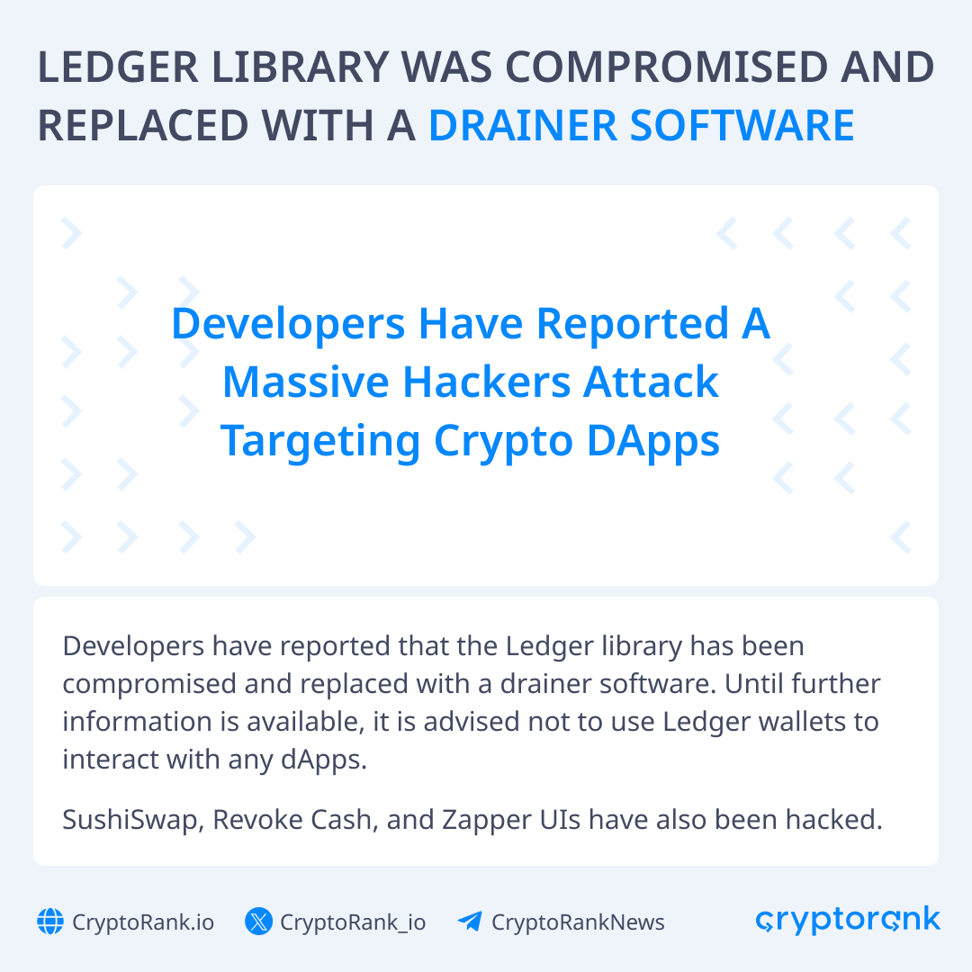 https://pbs.twimg.com/media/GBT3po5WcAALd-Q?format=png&name=medium (source : https://twitter.com/CryptoRank_io/status/1735284058853130628) donc gaffe à ce que vous faites. Edit : Warning: Multiple popular crypto applications that integrate with Ledger's ConnectKit library, including http://Revoke.cash have been compromised. We temporarily took the website offline as we're investigating further. We recommend not using *any* crypto website at all while this exploit is ongoing. Title: Re: Bitcoin wallet Ledger’s database hacked + Campagne de phishing en cours Post by: paid2 on December 14, 2023, 01:23:46 PM --snip-- donc gaffe à ce que vous faites. :o Wow en effet, ça sent mauvais... Merci Halab d'avoir partagé ! Il serait tant que Ledger prennent des vacances... ::) https://www.talkimg.com/images/2023/12/14/Ekr9H.png Pas sur de vouloir faire cette update.... mais pas trop le choix Title: Re: Bitcoin wallet Ledger’s database hacked + Campagne de phishing en cours Post by: LeGaulois on December 14, 2023, 01:44:27 PM Rhoo la chatte que j'ai. j'ai le cul bordé de nouilles