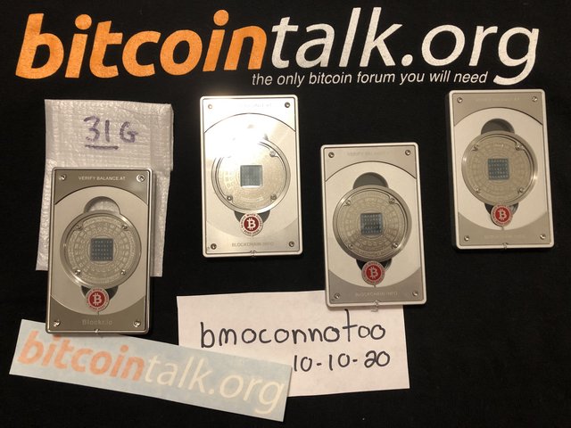 I'm trying to get money together to buy a house, so I'm going to be selling off some of my old crypto collectables. UPDATE 10-18-20: I've placed an offer on a house! If the offer is accepted, I probably won't need to sell off any other collectables... but if it's not, I'll start new postings for the remaining 2014 Kialara Originals and the 2015 Kialara Gold. Currently I have this 2014 Kialara Original #389/2500 up for sale on eBay at https://www.ebay.com/itm/133542311724 (https://www.ebay.com/itm/133542311724) SOLD In addition to this 2014 Kialara, I will also be selling Here are images of the other pieces I will be selling. The 2014 Originals are like the one listed on eBay (never funded, but small scratches from being packed/stored together) and the 2015 Gold doesn't have any scratches (because of the sleeve and the move to steel instead of aluminum for the housing). Since this account is still a "newbie" I can't embed images, so here are links. Also thanks to -doubleU- for the suggestion to add a picture with my username and today's date. everything with username and date (http://omglikewow.com/images/bitcointalk/all.jpg) 2014 Kialara Original #386 - UPDATE: Being sold to teeGUMES 10-12-20 386 front (http://www.omglikewow.com/images/bitcointalk/386-front.jpg) 386 back (http://www.omglikewow.com/images/bitcointalk/386-back.jpg) 2014 Kialara Original #387 387 front (http://www.omglikewow.com/images/bitcointalk/387-front.jpg) 387 back (http://www.omglikewow.com/images/bitcointalk/387-back.jpg) 2014 Kialara Original #388 388 front (http://www.omglikewow.com/images/bitcointalk/388-front.jpg) 388 back (http://www.omglikewow.com/images/bitcointalk/388-back.jpg) 2015 Kialara Gold #31 31 front (http://www.omglikewow.com/images/bitcointalk/31-front.jpg) 31 back (http://www.omglikewow.com/images/bitcointalk/31-back.jpg) Title: Re: [WTS] 2014 Kialara #389 Post by: bL4nkcode on October 10, 2020, 03:45:09 PM Sell your collectibles directly here with escrow, people here barely deal users selling outside the forum and that's why this board was created for such kind of deal.