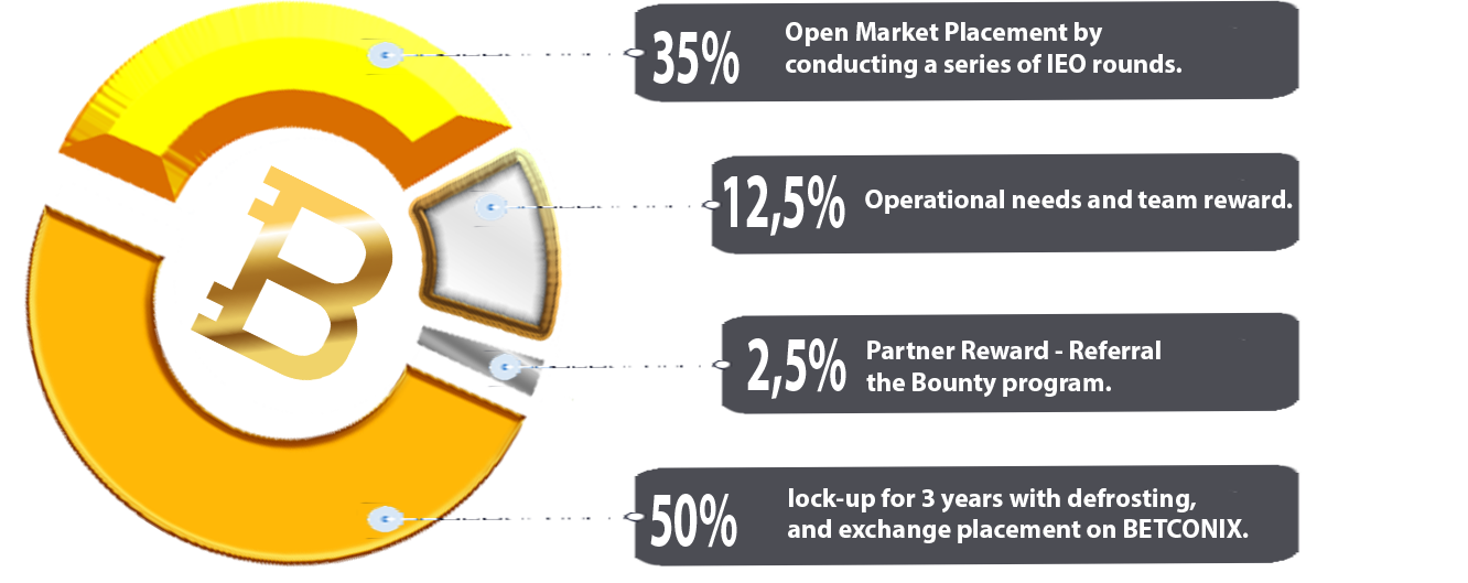Title: Re: [ANN] [IEO] BNIX Token of the cryptocurrency exchange BETCONIX | Commission Free Post by: aaforward on November 19, 2020, 06:18:13 AM How many tokens are allocated for IEO? What would happen to unsold tokens? Distribution of the total issue of tokens. ● 35% of the issue - places on the open market by conducting a series of placement rounds - a closed (private) pre-sale among large buyers who are interested in our platform, and three public rounds (IEO) among all those who want to purchase a token. ● 12.5% of the issue - operational needs + pre-emptive right of buyout by the exchange team; ● 2.5% of the issue - remuneration under the “bounty” partner program; ● 50% of the issue - lock-up for 3 (three) years with defrosting, and exchange placement on BETCONIX.COM. Permission and defrosting occur every 6 months for the development of the product component of the exchange, as well as for marketing purposes. https://static.wixstatic.com/media/bba423_4f0d266528e547548e5858b70789bf6a~mv2.png The placement round is considered completed if 25% or more of the planned volume is placed. If the placement round is declared invalid (less than 25% of the planned volume was placed). BETCONIX.COM undertakes to redeem the actually placed tokens at the price of the placement in the failed round. In the event of a failed placement, the redemption must take place no later than 30 calendar days from the date of completion of the round that was declared invalid. Read more on the website https://www.bnix.info (https://www.bnix.info) Title: Re: [ANN] [IEO] BNIX Token of the cryptocurrency exchange BETCONIX | Commission Free Post by: aaforward on November 19, 2020, 06:27:18 AM I heard a mobile app will be released soon to exchange from the smartphone. Is it available already? According to the roadmap, the maximum release date for the mobile app is Q4 2021. But we plan to release it in the second quarter of Q2 2021. Title: Re: [ANN] [IEO] BNIX Token of the cryptocurrency exchange BETCONIX | Commission Free Post by: micle00 on November 19, 2020, 05:20:49 PM Bounty/Affiliate program looks good, any requirements to participate? And from where can I get the referral code?