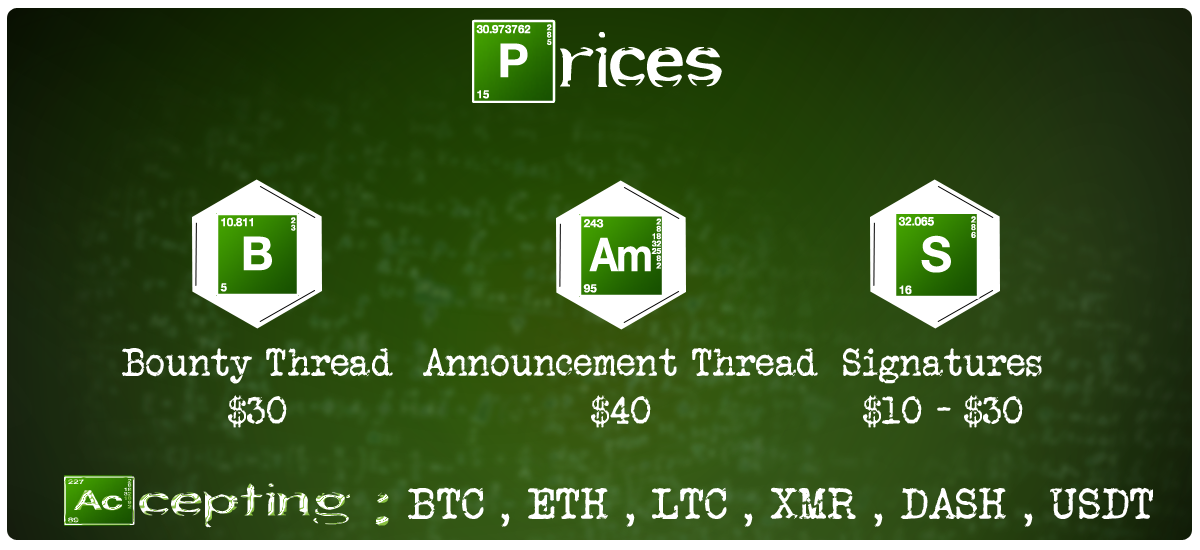 Title: Re: ---{ Heisenberg Signature Design Services }--- - Starts at $10 Post by: legendster on January 10, 2021, 12:51:04 AM Go for it.
