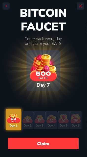 They have a daily 20 bits ( 2000 satoshi) faucet which you can claim every 24 hours and you don't even need your balance is zero to claim it. Title: Re: List Of Crypto Casinos with The Best Faucets Post by: Pmalek on October 31, 2025, 02:35:10 PM You might want to check Astrobet.gg, they are relatively new and there is only crash game available on their site as of now but they told here on the forum they plan to also offer slots in the future. As you said, the casino is brand new. Astrobet hasn't even been on the forum one whole month yet. I will wait for at least two or three months before considering adding new casinos to the list.They have a daily 20 bits ( 2000 satoshi) faucet which you can claim every 24 hours and you don't even need your balance is zero to claim it. On first look, it seems like an interesting Bitcoin-only casino that operates without a license and therefore might remain KYC-free. Something that is becoming a rarity in today's time and age. But the more games and providers they incorporate and the more popular the site becomes, the bigger the pressure to start following AML and KYC requirements by regulators. Title: Re: List Of Crypto Casinos with The Best Faucets Post by: leonair on October 31, 2025, 02:44:44 PM You might want to check Astrobet.gg, they are relatively new and there is only crash game available on their site as of now but they told here on the forum they plan to also offer slots in the future. As you said, the casino is brand new. Astrobet hasn't even been on the forum one whole month yet. I will wait for at least two or three months before considering adding new casinos to the list.They have a daily 20 bits ( 2000 satoshi) faucet which you can claim every 24 hours and you don't even need your balance is zero to claim it. On first look, it seems like an interesting Bitcoin-only casino that operates without a license and therefore might remain KYC-free. Something that is becoming a rarity in today's time and age. But the more games and providers they incorporate and the more popular the site becomes, the bigger the pressure to start following AML and KYC requirements by regulators. Title: Re: List Of Crypto Casinos with The Best Faucets Post by: God Of Thunder on November 01, 2025, 12:55:15 AM After claiming have amount detail how much satoshi earned for upcoming claim for the first day 50 then second day I earned faucet 60 satoshi, for third day increasing up to 10 satoshi and earn around 70 satoshi but will reset to be 50 satoshi if missing claim in one days or several days? Likely for day 7 will earn 150 satoshi and any one have claimed after seven days will reset to 50 sat or the amount keep increasing. If really increasing I won't miss any one day yet for claiming faucet. I think 1 day missed will reset your claim to day one again. It's about Streak if I am not wrong. You must maintain the streak, and your rewards will be increased for the next seven days. I never managed to improve my streak because I forgot to come back the next day and claim it. But if you are a regular gambler and do not want to miss the bonuses, you can surely try Bitz faucet. I like it because of the no-wagering requirement. They have a daily 20 bits ( 2000 satoshi) faucet which you can claim every 24 hours and you don't even need your balance is zero to claim it. I think it depends on your level. I get 10 bits there. How about the wagering requirement? They have a wagering requirement everywhere. Imagine you wagered a few thousand dollars and ranked up, only to find that your rank-up bonus has a wagering requirement. How is that? Title: Re: List Of Crypto Casinos with The Best Faucets Post by: Pmalek on November 01, 2025, 07:48:35 AM I think 1 day missed will reset your claim to day one again. It's about Streak if I am not wrong. You must maintain the streak, and your rewards will be increased for the next seven days. I never managed to improve my streak because I forgot to come back the next day and claim it. But if you are a regular gambler and do not want to miss the bonuses, you can surely try Bitz faucet. I like it because of the no-wagering requirement. Yes, the whole idea is to visit the faucet section every day and claim your rewards. On the first day you get 50 sats, on the second you get 60, on the third you get 70, and the maximum is 150 sats for the last claim of the week. The rewards increase every day on condition that you don't forget and don't break your streak. If you do, you go back down to 50 sats for the first claim and you have to work yourself up again.Title: Re: List Of Crypto Casinos with The Best Faucets Post by: UmerIdrees on November 01, 2025, 07:56:40 AM I think 1 day missed will reset your claim to day one again. It's about Streak if I am not wrong. You must maintain the streak, and your rewards will be increased for the next seven days. I never managed to improve my streak because I forgot to come back the next day and claim it. But if you are a regular gambler and do not want to miss the bonuses, you can surely try Bitz faucet. I like it because of the no-wagering requirement. Yes, the whole idea is to visit the faucet section every day and claim your rewards. On the first day you get 50 sats, on the second you get 60, on the third you get 70, and the maximum is 150 sats for the last claim of the week. The rewards increase every day on condition that you don't forget and don't break your streak. If you do, you go back down to 50 sats for the first claim and you have to work yourself up again.I used to actively collect satoshi few years back but now I don't think I would be spending my time on them. But for the new ones who are very new to crypto or who don't have any other means to collect bitcoin, faucets are the easiest and free way to accumulate satoshis. And to all those who are accumulating satoshi through faucets, I would suggest them not to sell them and keep them for at least 10 years and see if they make some reasonable good money t