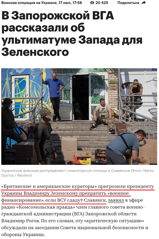 https://i.postimg.cc/fLdY3wjK/289.png Ваще, конечно, похоже на пиздеж. Слишком хорошо, чтобы быть правдой. Вряд ли западные кураторы перекроют финансирование из-за какого-то Славянска, который ВСУ и так скоро гарантированно проебут и сдадут. Но ... а вдруг? ) |