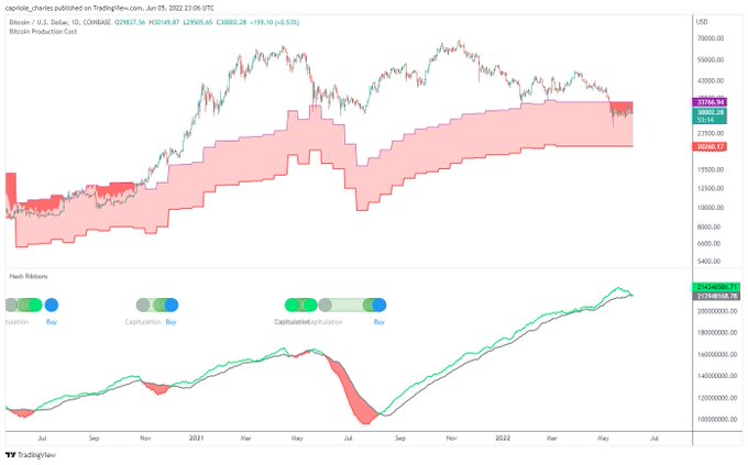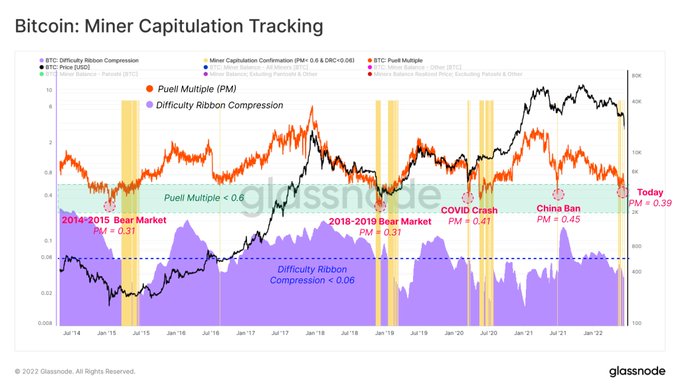 Capitulations are for all sorts of participants in Bitcoin space: miners, traders, speculators, investors. Capitulations mean Bitcoin will be exchanged from weak hands to diamond hands, weak miners to diamond miners. Even capitulation appears, there will probably be a last crash to wash out all last weak hands or a little bit soft-hand out of the market. An example is the wash-out in March 2020. https://pbs.twimg.com/media/FUhkrkLUUAEiXsX?format=jpg&name=small (https://twitter.com/caprioleio/status/1533586499681210368) https://pbs.twimg.com/media/FVeH7HnWIAMlqzb?format=jpg&name=small (https://twitter.com/glassnode/status/1537848148407816194) It's started but has yet completed and even after miner capitulation, the market will need time to recover and start a new bull run. It happens with past cycles and it will do happen with this one too. Title: Re: 90%+? miners can go offline right now and we would be okay? Post by: franky1 on June 20, 2022, 02:06:53 AM what you find is that the most efficient miners with cheapest electric do not pay for their electric day-to-day or monthly.. they pay for it in contracts of quarterly/2-yearly, where the cost is fixed and paid for upfront.