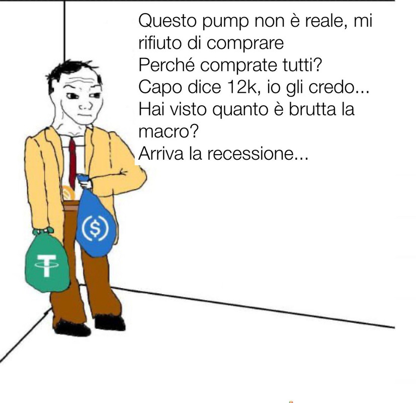 https://i.postimg.cc/Kz0F56jb/IMG-1354.jpg (https://postimg.cc/xJNWfFLp) Title: Re: MEME su Bitcoin e altre cryptovalute Post by: giammangiato on September 22, 2023, 02:24:06 PM Questa dell?ETF sono riuscito a capirla. Quella prima (urrenda proprio) no. Ho capito che un sacco di gente aspetta sto ETF e la cosa, ovviamente, sta diventando una barzelletta non da poco. Ahaha Io aspetto la cipollata (troll mode) Title: Re: MEME su Bitcoin e altre cryptovalute Post by: fillippone on September 23, 2023, 07:13:51 AM Questa dell?ETF sono riuscito a capirla. Quella prima (urrenda proprio) no. Significa solo che i gambler con basso livello intellettivo, pensando di fare soldi con bitcoin, comprano alto e vendono basso, ripetutamente... Title: Re: MEME su Bitcoin e altre cryptovalute Post by: creep_o on September 23, 2023, 01:46:17 PM Non è proprio un meme ma secondo me ci assomiglia 🙂