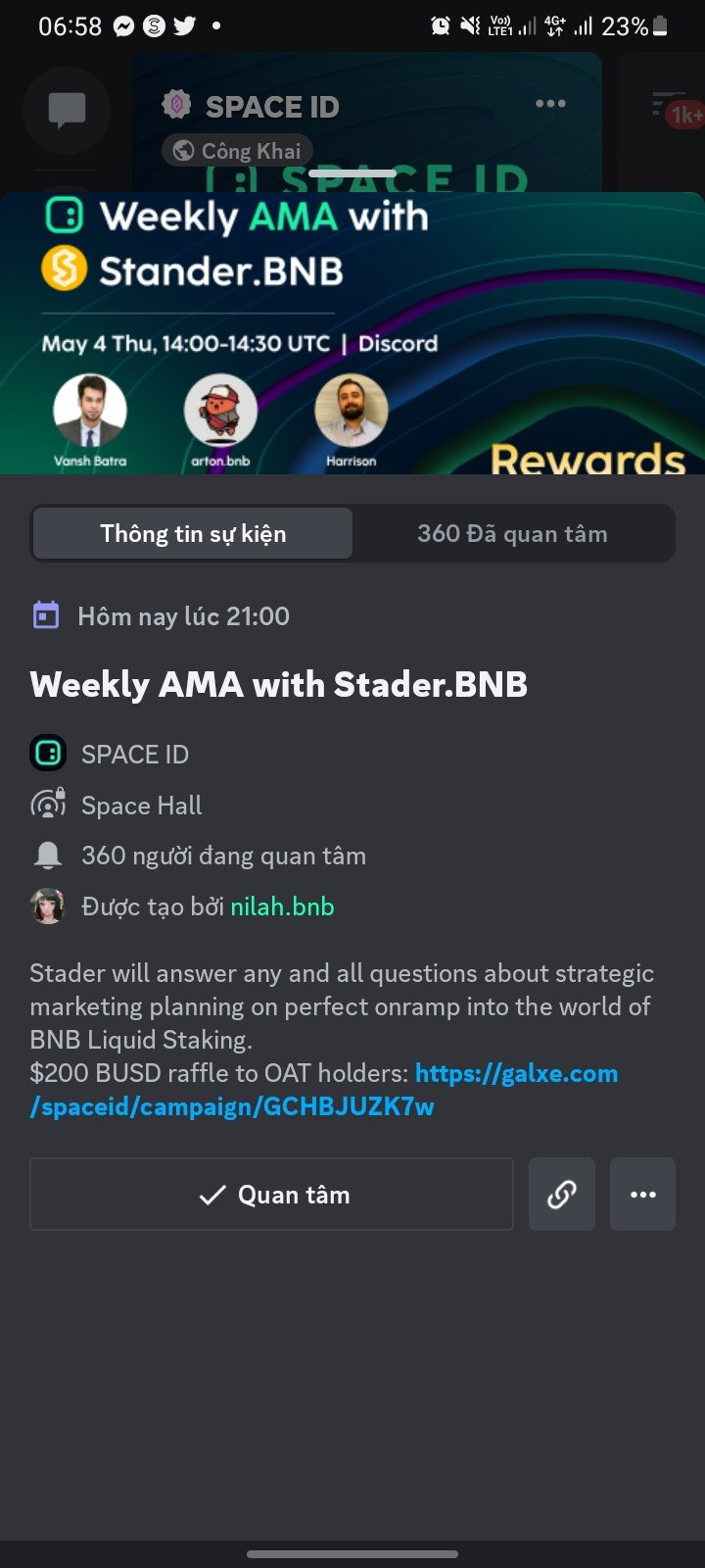 1. MOONSHOT (игровой NFT проект в DeFi) https://twitter.com/RS25Moonshot/status/1610205088173129729?s=20&t=JnCa2oIAgpPDnv9mSQfKmQ 2. Metopia (проект по созданию непередаваемых значков в виде NFT) https://twitter.com/MetopiaMetopian/status/1610510323299291136?s=20&t=H-4LY7pVev1817zIFfDA-Q 3. Deri Trade (платформа для торговли деривативами) https://twitter.com/DeriTrade/status/1610319204447846405?s=20&t=NXk6gdsHEIjrW01E8pe87Q 4. TokenPocket https://twitter.com/TokenPocket_TP/status/1610581042569834497? Завтра AMA с ребятами из Gameta: https://galxe.com/spaceid/campaign/GCHRzU4m5b Опять раздадут десятерым участникам по 20 USDT скорее всего. Title: Re: Space ID - универсальные имена вместо адресов! Post by: xandry on January 11, 2023, 04:29:47 PM Завтра состоится AMA совместно с ребятами из TokenPocket Wallet и последующий розыгрыш 200$ TPT. Своё местное время можно увидеть на приглашении по ссылке: https://discord.com/events/953120695431331901/1062559653529133176 Ещё я тут чего-то забыл написать про промо с Rareboard, исправляюсь: Rareboard теперь раздаёт CAT (Claimable Achievement Token) владельцам доменов Space ID! Чтобы получить свой CAT нужно: 1. Естественно всё же быть владельцем домена .bnb 2. Хотя бы раз совершить сделку или Mint на Rareboard Вероятно самая дешёвая коллекция NFT на этом сайте это https://www.rareboard.com/extensionpunks Забрать свой CAT можно на странице https://rareboard.com/profile После этого вы становитесь участником раздачи 4444 $BUSD! https://twitter.com/Rareboard/status/1611417857757167628 Title: Re: Space ID - универсальные имена вместо адресов! Post by: xandry on January 12, 2023, 08:42:17 PM Новая интеграция и на этот раз с BscScan!