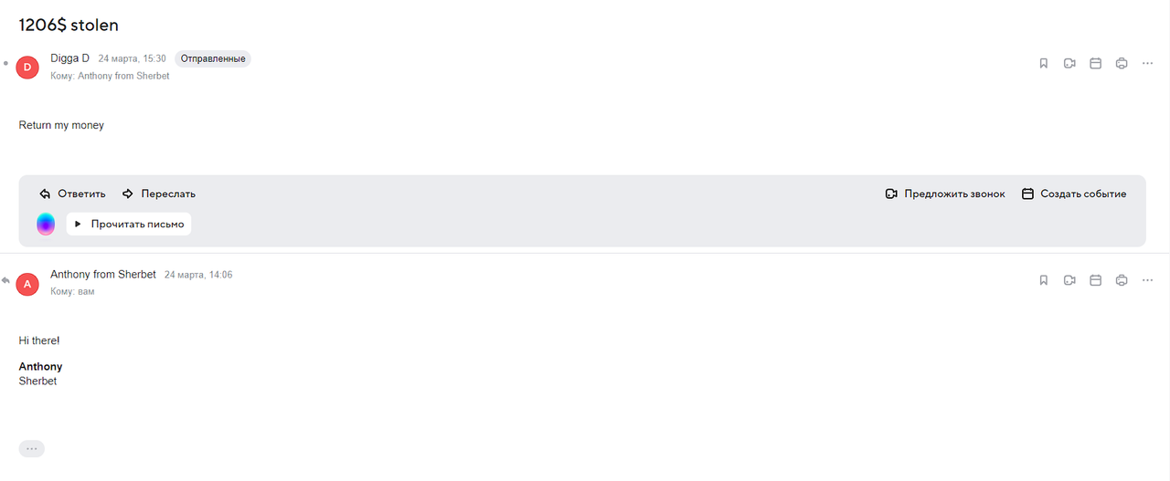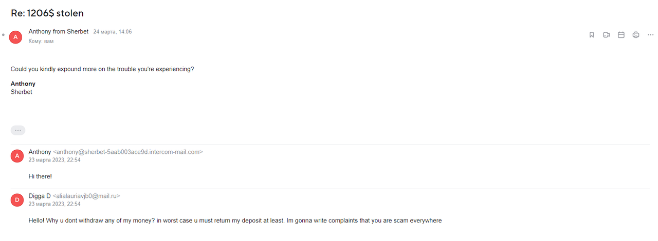 Title: Sherbet.com 1206$ SCAM (stolen deposit) Post by: diggad on March 24, 2023, 11:08:03 AM What happened: