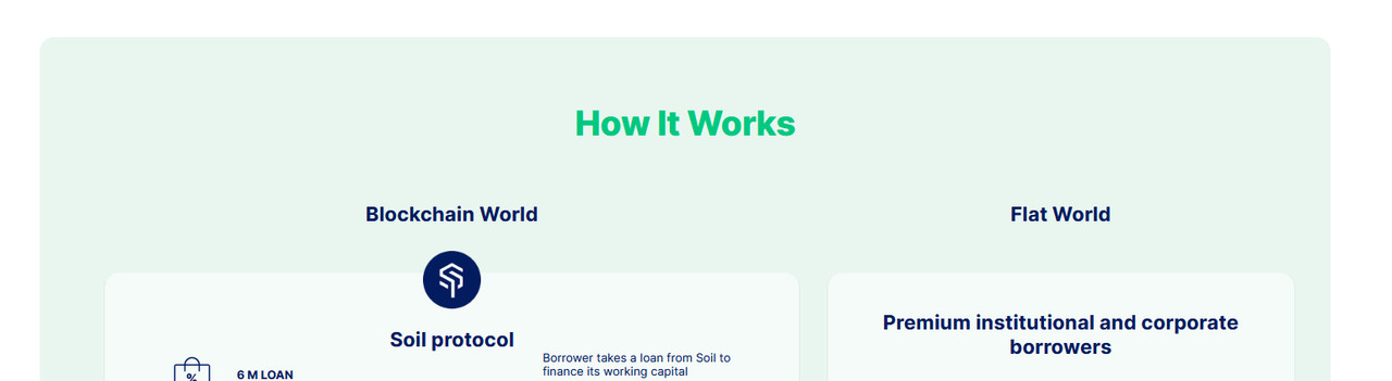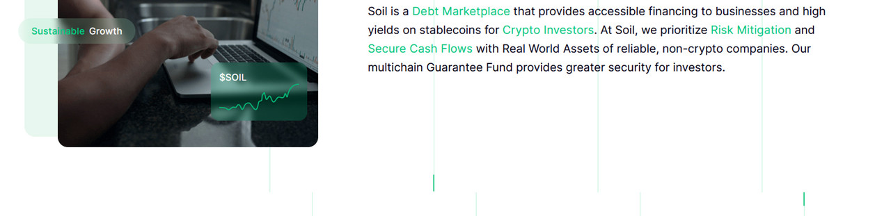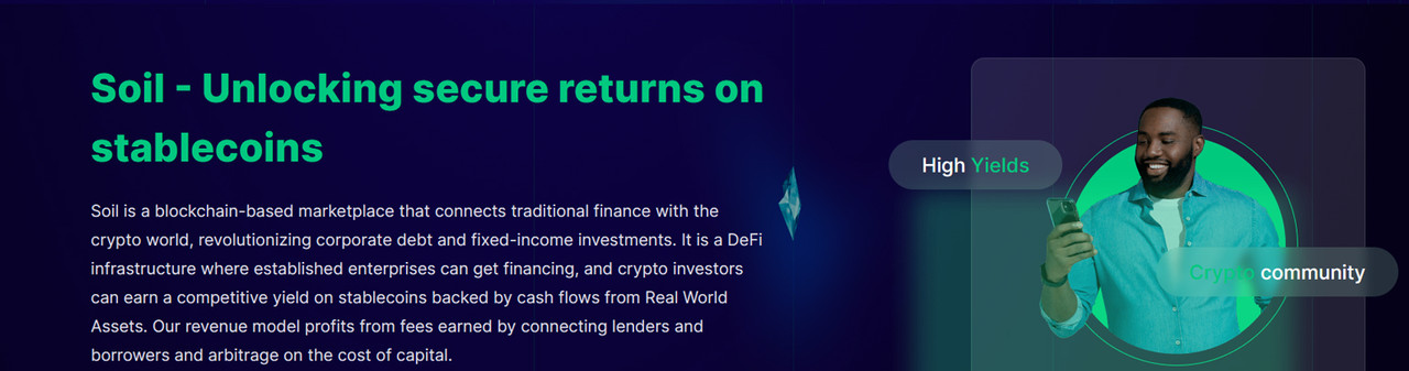 Title: Re: [ANN] Soil - The First Regulated DeFi in WEB3 Post by: julerz12 on July 14, 2023, 06:19:36 AM Soil is a blockchain-based lending protocol backed by Real World Assets. And what is the purpose of Real World Assets? It brings tangible assets onto the blockchain, providing asset holders with unique DeFi opportunities and benefits that are unavailable in traditional finance. https://pbs.twimg.com/media/FyWopTWaAAILNUK?format=jpg&name=medium Source: https://twitter.com/soil_farm/status/1679521281526611968 Title: Re: [ANN] Soil - The First Regulated DeFi in WEB3 Post by: julerz12 on July 15, 2023, 01:08:07 PM Soil's mission is twofold: 1. To provide crypto investors with stable, attractive, and secured yields on stablecoins. 2. To open new alternative sources of liquidity for traditional and regulated financial markets. https://pbs.twimg.com/media/Fx9vpJvaUAAstYC?format=jpg&name=medium Source: https://twitter.com/soil_farm/status/1679219119391129600 Title: Re: [ANN] Soil - The First Regulated DeFi in WEB3 Post by: julerz12 on July 16, 2023, 01:57:04 PM Real World Assets meet the power of blockchain. With Soil's lending protocol, we're revolutionizing #finance by bridging traditional assets with decentralized technology. Unlock new possibilities and reap the benefits of trustless, transparent, and cost-effective lending. https://pbs.twimg.com/media/Fx84w_pacAA_2SF?format=jpg&name=medium Source: https://twitter.com/soil_farm/status/1680245885660463105 Title: Re: [ANN] Soil - The First Regulated DeFi in WEB3 Post by: julerz12 on July 17, 2023, 02:16:44 PM How does SOIL make money? SOIL generate revenue by taking a percentage of the interest paid by borrowers to lenders and earning fees from facilitating their connection. The $SOIL token is designed to capture the profits generated by the protocol. https://pbs.twimg.com/media/Fx3vPGTaQAA9Tj8?format=jpg&name=medium Source: https://twitter.com/soil_farm/status/1680608237836701696 Title: Re: [ANN] Soil - The First Regulated DeFi in WEB3 Post by: julerz12 on July 18, 2023, 12:19:37 PM Soil takeS risk mitigation seriously. To enhance the protocol's safety, cover default risk, and provide additional comfort for risk-averse lenders, Soil has established a unique multichain Guarantee Fund that secures stablecoin loan repayments. https://pbs.twimg.com/media/FyWopTWaAAILNUK?format=jpg&name=medium Source: https://twitter.com/soil_farm/status/1680668627723489280 Title: Re: [ANN] Soil - The First Regulated DeFi in WEB3 Post by: julerz12 on July 20, 2023, 08:39:36 AM Huge congratulations to Nick Motz, SOIL's Chief Investment Officer, for successfully completing the Professional Leadership Development (#PLD) program from #Harvard Business School! Soil is proud to have such a remarkable leader guiding its investmen team. https://pbs.twimg.com/media/F1ceYoCaEAA6K0J?format=jpg&name=large Source: https://twitter.com/soil_farm/status/1681846399229624320 Title: Re: [ANN] Soil - The First Regulated DeFi in WEB3 Post by: julerz12 on July 21, 2023, 05:45:32 AM Soil prioritizes thorough due diligence on borrowers. CIO Nick Motz and Private Debt Funds provide stability and reliable yield. https://pbs.twimg.com/media/FxxFZ0SaAAEwOqQ?format=jpg&name=medium Source: https://twitter.com/soil_farm/status/1682057804167933952 Title: Re: [ANN] Soil - The First Regulated DeFi in WEB3 Post by: julerz12 on July 22, 2023, 02:03:09 PM SOIL is leading the way for the next bull run by harnessing the power of Real World Assets. With blockchain technology revolutionizing #finance, SOIL firmly believes that the future of the industry lies in utilizing technology to democratize financial products. https://pbs.twimg.com/media/FxwVUHTakAYIESc?format=jpg&name=medium Source: https://twitter.com/soil_farm/status/1682571168396738562 Title: Re: [ANN] Soil - The First Regulated DeFi in WEB3 Post by: julerz12 on July 23, 2023, 01:19:21 PM Exciting News! Soil getting closer and closer to the TGE and CEX listing! One of the FIRST regulated DeFi projects with the yield on the stables is on the horizon! https://pbs.twimg.com/media/FxrLuUHaUAA5mvQ?format=jpg&name=medium Source: https://twitter.com/soil_farm/status/1682782576640131072 Title: Re: [ANN] Soil - The First Regulated DeFi in WEB3 Post by: ololajulo on July 23, 2023, 04:24:46 PM Based on the project updates and recent discussions, it has been confirmed that the team has decided not to pursue serious crowdfunding. Instead, they are planning to proceed with a CEX listing around August or September, as per their agreement with the exchange. This news is undoubtedly thrilling for both token holders and investors. However, it is crucial that the team makes a wise choice regarding the exchange listing to ensure a successful outcome.