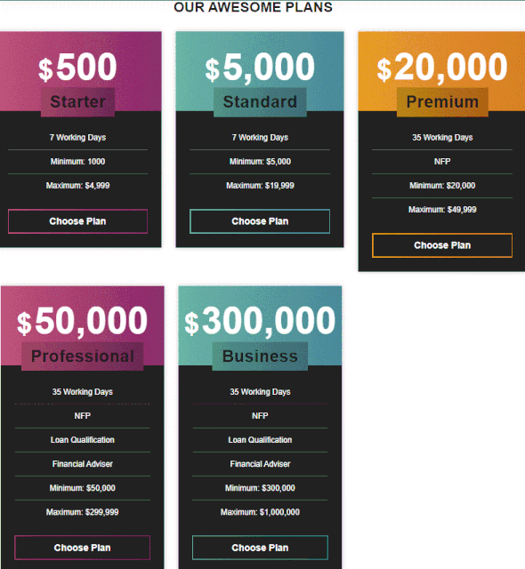 Title: Re: Cfoptionnetwork - Ponzi scheme Post by: Gladitorcomeback on December 21, 2023, 02:57:38 AM Thanks OP , Flags supported. by checking website it is totally clear without any doubt that it is true ponzi scam. Their package plans are looking so delicious which is trick to attract big investors. When they get big investment then you will see how they accused when you want to withdraw. I hope no one would became victom as OP done their job by creating flag. The post should be deleted and site need to be blacklisted.
