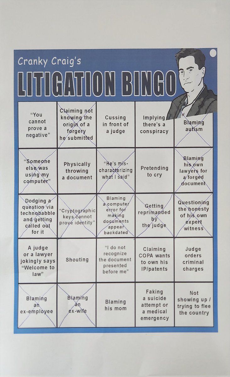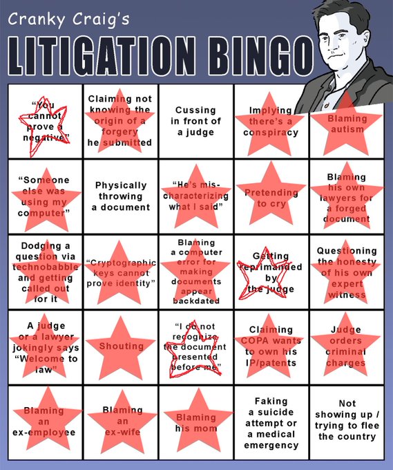it doesnt matter if someone claims someone else did it/hacked/swapped things/added. what you hand in needs to be checked by you because once handed in, its your responsibility and everything is then on you (well not the analogy itself, but point out that his excuses hold no weight as whats filed is his responsibility) CSW's efforts are akin to a school kid handing in his homework. the teacher gives him an F grade and the kid is like "um um but but, its not my homework sir, please give me an A for effort".. in this analogy he deserves detention, twice. not just a F grade Title: Re: Updates from the COPA v Craig Wright trial Post by: hilariousetc on March 01, 2024, 10:36:32 AM i hope copa lawyers actually use the airport bag security check-in analogy it doesnt matter if someone claims someone else did it/hacked/swapped things/added. what you hand in needs to be checked by you because once handed in, its your responsibility and everything is then on you (well not the analogy itself, but point out that his excuses hold no weight as whats filed is his responsibility) CSW's efforts are akin to a school kid handing in his homework. the teacher gives him an F grade and the kid is like "um um but but, its not my homework sir, please give me an A for effort".. in this analogy he deserves detention, twice. not just a F grade Well, they usually push back on the excuses/lies, but only once and then just quickly move on. You would think they would push him a little further given the ridiculousness of the blatant lie, but hopefully the judge is aware of the fancifulness of Craig's excuses and that's all that is needed. Craig's lies are pretty much the legal equivalent of the dog ate my homework. These are all documents he submitted as proof of his claims and now they're doing the opposite it's the shaggy defence of it wasn't me. Why can't Craig just go back and get all the "original" unedited non-hacked documents (because obviously he can't because they don't exist, but I'm surprised the lawyers haven't asked for these). It's like a murderer sat in court and the judge asking why he was found covered in blood, holding the murder-weapon and a receipt for the knife in his pocket, and the only person with motive to commit the murder is that person, but his defence is it must have been someone else or the evidence was planted. How many forgeries are enough? Every document he has submitted has been proven to be forged or tampered with in some way and many are blatant, even the physical notepad should have ended any doubt. If Craig isn't found in contempt and there isn't another trial for that with potential jailtime I think this whole process will have been a farce. If Craig loses this case is he going to be barred from claiming to be Satoshi, or just in the UK? Is he going to just ignore that and possibly move to a different country and still make the same claims whilst no doubt appealing the verdict. I'm really hoping he gets a taste of his own medicine and ends up in several lawsuits that he's never out of court. Oh, and we've nearly got a bingo: https://pbs.twimg.com/media/GHJzAqyXEAAhb_R?format=jpg&name=small Title: Re: Updates from the COPA v Craig Wright trial Post by: LeezHamilton on March 01, 2024, 10:00:51 PM What will be the next session on 12 March 2024 ?