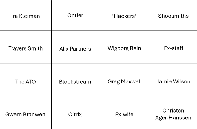 *https://bitcointalk.org/index.php?topic=5490774.msg63940457#msg63940457 bottom right paragraph of the prelude snippet involving the BVS businesses all wrapped up as a package owned by mathews/mcgregor as for the second order for the £1m i havnt done any research this month on if thats another business as part of the CSW/mathews/mcgregor. or CSW/ayres or just CSW i thought that ayres already departed and left his avatars and social media profiles with a BSV PR team to manage, where ayres previously suggested no longer funding CSW so thats why i was asking about if the £1m (second order) got paid up. oh well we should hear more next week (currently listening to the prt6 podcast to update self on april drama) Title: Re: Updates from the COPA v Craig Wright trial Post by: zasad@ on May 20, 2024, 01:03:28 PM https://x.com/WuBlockchain/status/1792525049003671775