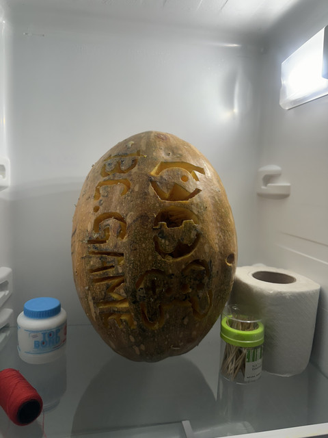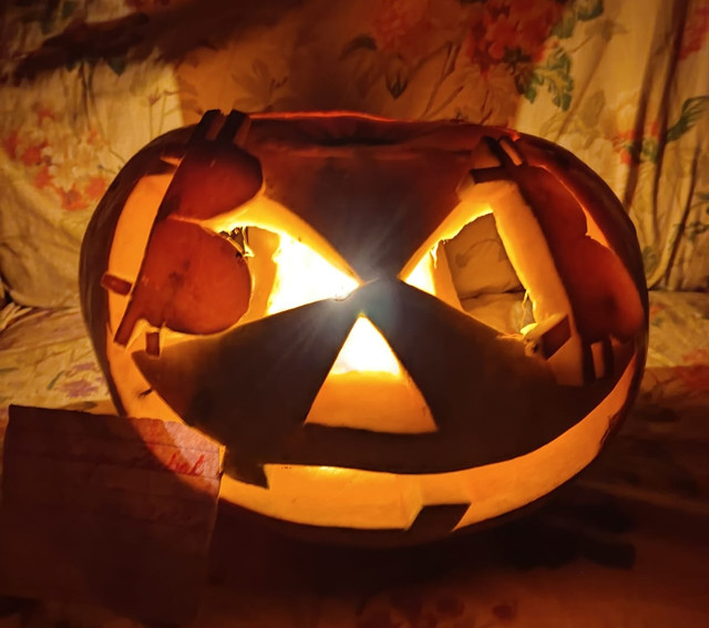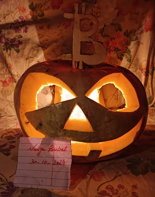 It was an incredible experience carving a pumpkin. It was my first time making a pumpkin and my goal was to do a really fine job, so I carved with a real surgical scalpel that I found in my toolbox. I sharpened it and... https://i.ibb.co/8byXt9G/IMG-20241027-225118-948.jpg (https://ibb.co/68KNLFG) https://i.ibb.co/VWtDt3w/IMG-20241027-225119-758.jpg (https://ibb.co/99N2NGZ) Lights off! https://i.ibb.co/8Nnxz6k/IMG-20241027-225118-862.jpg (https://ibb.co/KbcsNFn) https://i.ibb.co/crCtm3Q/IMG-20241027-221124.jpg (https://ibb.co/vjQmtqk) https://i.ibb.co/D786whz/IMG-20241031-150926-133.jpg (https://ibb.co/nDnVQ96) https://i.ibb.co/gVM0hcr/IMG-20241027-225119-106.jpg (https://ibb.co/HdDc39K) WIP: https://i.ibb.co/sHx462S/IMG-20241027-143052.jpg (https://ibb.co/sHx462S) https://i.ibb.co/tJWTTwR/IMG-20241027-144147.jpg (https://ibb.co/tJWTTwR) https://i.ibb.co/M86BX25/IMG-20241027-145516.jpg (https://ibb.co/M86BX25) https://i.ibb.co/XLpqw2f/IMG-20241027-151228.jpg (https://ibb.co/XLpqw2f) https://i.ibb.co/NYkFXWr/IMG-20241027-152425.jpg (https://ibb.co/NYkFXWr) https://i.ibb.co/ch0VZJ2/IMG-20241027-154247.jpg (https://ibb.co/ch0VZJ2) https://i.ibb.co/Yd04CQS/IMG-20241027-161556.jpg (https://ibb.co/Yd04CQS) https://i.ibb.co/ZGW1jFX/IMG-20241027-163555.jpg (https://ibb.co/ZGW1jFX) Sign: https://i.ibb.co/QFppc9s/IMG-20241027-233155.jpg (https://ibb.co/3y44s1t) Bonus: https://i.ibb.co/23498rz/IMG-20241027-225119-297.jpg (https://ibb.co/23498rz) https://i.ibb.co/MRmh0k1/IMG-20241031-150924-670.jpg (https://ibb.co/MRmh0k1) https://i.ibb.co/J59Q1yB/IMG-20241031-150906-147.jpg (https://ibb.co/J59Q1yB) https://i.ibb.co/kQHDWWV/IMG-20241031-150905-666.jpg (https://ibb.co/kQHDWWV) Thanks for your attention! 🎃 Happy Bitcoin Pumpkin Carving! P.s. There are no sticks or other supporting elements in the pumpkin. Just the pumpkin itself. The photos have not been edited or color corrected in any way. Title: Re: 🎃 [ANN] Bitcointalk Bitcoin Pumpkin Carving Contest 🎃 Post by: Nalain420 on October 31, 2024, 12:09:53 PM Happy Bitcoin BTC Pumpkin Craving 🎃
