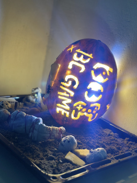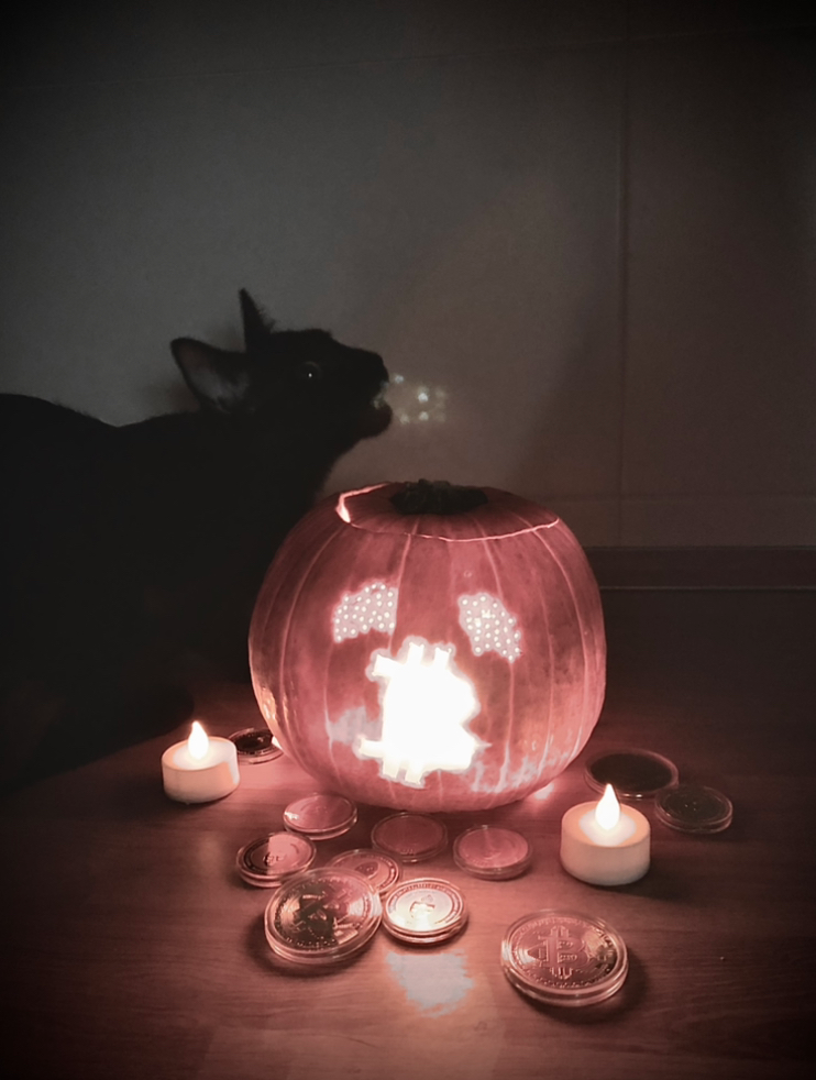 My theme had to do intrinsically with the shape of my pumpkin, at first I thought of using it for a kind of pumpkin with a witch's hat, but the process led me to: the pumpkin projects the idea of bitcoin, it lights up... consequently that candle light turns into the bitcoin logo, hence, if the pumpkin could think... it would think of bitcoin. It is important to add that if you do not want the pumpkin to think about bitcoin all the time, you have the option of putting it in Hold mode, so, you remove the logo as shown in the photos below -/process of...:/- 1.Hola: La "calabaza". 2. Presentation of ideas: https://www.talkimg.com/images/2024/10/28/KjzcH.jpeg https://www.talkimg.com/images/2024/10/28/KjTab.jpeg 3. The process of bringing an idea to "life": https://www.talkimg.com/images/2024/10/28/KjP9C.jpeg https://www.talkimg.com/images/2024/10/28/KjY9c.jpeg 4. The process... https://www.talkimg.com/images/2024/10/28/KjFqg.jpeg https://www.talkimg.com/images/2024/10/28/KjyXP.jpeg https://www.talkimg.com/images/2024/10/28/Kjj0G.jpeg 5. My official Bitcointalk Bitcoin Pumpkin Carving https://www.talkimg.com/images/2024/10/28/KjVcj.jpeg https://www.talkimg.com/images/2024/10/28/KjJtq.jpeg Title: Re: 🎃 [ANN] Bitcointalk Bitcoin Pumpkin Carving Contest 🎃 Post by: ChiBitCTy on October 28, 2024, 06:54:58 AM Just a couple days left guys!!
