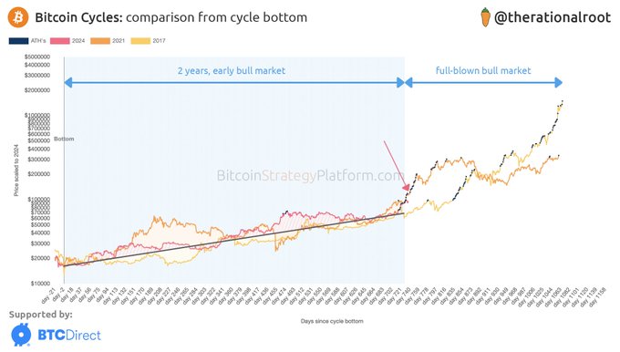 Minha expectativa é que a cotação continue subindo forte ainda nesse mês e ai minha dúvida é se após a posse do Trump em 20 de janeiro as coisas esfriam um pouco pois entra naquela de subir no boato e cair no fato ou se ele já entra no governo acelerando ainda mais as coisas e esse projeto de reserva em BTC começa realmente a se efetivar e ai sim o negócio explode de vez e talvez os 100k se tornem um suporte que nem vai ser mais ameaçado mesmo em um bear market. Então pelo menos pra mim a estratégia vai ser ficar bem ligado nas próximas semanas e meses e vou sim fazer umas vendas pra não ficar vulnerável em caso de grandes correções. Title: Re: Estratégia de saída da Bull Run 2024/2025 + Bola de Cristal Post by: rdluffy on December 08, 2024, 04:03:24 PM Bom tópico, também quero saber a estratégia do pessoal aqui