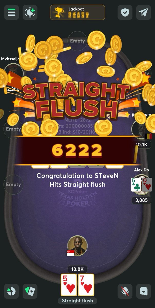 A lucky player got the biggest jackpot ever! Player STeveN in 10/20 using 57♥ get a Straight flush! And earned $6222! Come and play, you will be next lucky winner! https://t.co/p2xhgs9oNE https://pbs.twimg.com/media/GjqvKqfaUAAzpwl.jpg Best Regards, BCPoker! 💚 Title: 🔥 BC Poker - Your Ultimate Poker Playground! Post by: BcPoker on February 17, 2025, 02:25:53 AM I don't want to say that