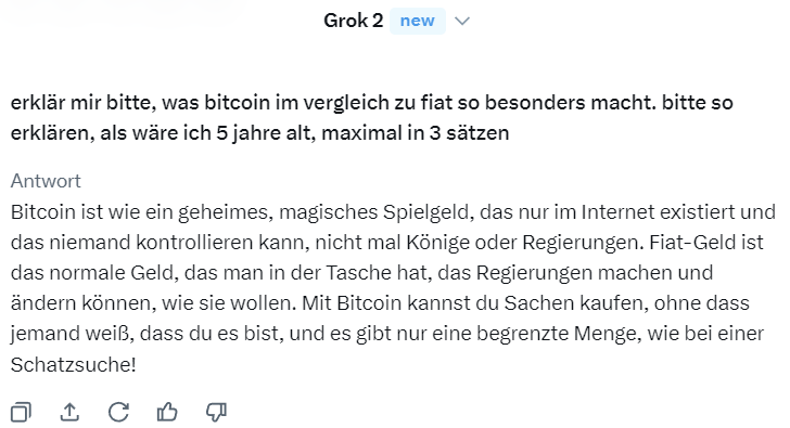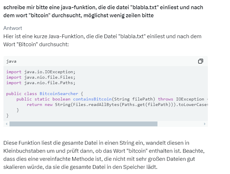 Title: Re: Allgemeine Frage zur Zukunft von Bitcoin Post by: Lafu on January 07, 2025, 04:05:04 PM Gibt also noch viel zu lernen für mich. Das ist richtig und das ended nie , auch nach 9 Jahren hier lernt man immer wieder was neues hier im Forum und in der Kryptowelt.Neben Suchmaschinen kann man mittlerweile auch KIs wie ChatGPT oder Grok sehr gut dazu einsetzen um Standardfragen zu klären Ganz ehrlich ich habe noch nie KI oder ChatGPT benutzt , ich bin da eher old school :DAls Hilfe könntest du einfach alte Threads durchstöbern oder die forumeigene Suchfunktion nutzen (diese funktioniert aber nicht immer so gut). Mich wundert es das ihr die wichtigste und beste Suchlösung hier im Forum noch nicht erwähnt habt !Am besten funktioniert die Suche hier im Forum mit Ninjastic.space - BitcoinTalk Post/Address archive + API (https://bitcointalk.org/index.php?topic=5273824.0) von TryNinja. Bei https://ninjastic.space/search (https://ninjastic.space/search) einfach eingeben was du suchst und du findest bestimmt was. Title: Re: Allgemeine Frage zur Zukunft von Bitcoin Post by: Lakai01 on January 07, 2025, 05:21:22 PM Ganz ehrlich ich habe noch nie KI oder ChatGPT benutzt , ich bin da eher old school :D Ich habs ursprünglich ehrlich gesagt auch als Hype abgetan der wieder schnell verschwinden wird, bin aber immer fester davon überzeugt, dass diese Werkzeuge viele Bereiche, wie wir sie heute kennen, komplett umkrempeln werden. Das fängt bei ganz allgemeinen Dingen an: https://i.postimg.cc/QtLVwbHf/screenshot-660.png (https://postimages.org/) ... geht über eine mittlerweile sehr gute Unterstützung in der Softwareentwicklung: https://i.postimg.cc/ZKfn4ZWB/screenshot-661.png (https://postimages.org/) ... bis hin zur Unterstützung von Diagnostik in der Medizin: Quote ChatGPT-4 hat die Leistungen von Ober- und Assistenzärzten bei der Verarbeitung medizinischer Daten und im Hinblick auf klinische Argumentation übertroffen. Der Vergleichstest wurde am Beth Israel Deaconess Medical Center (BIDMC) in Boston durchgeführt. Grundlage war ein bei Medizinern anerkanntes Punktesystem, der sogenannte "r-IDEA Score". Quelle (https://www.mdr.de/wissen/medizin-gesundheit/news-chatgpt-besser-als-aerzte-bei-klinischen-schlussfolgerungen-100.html) Und die Tools werden immer besser, allen voran auch in der Erstellung von Videos oder Bildern. Hier wird man wohl in naher Zukunft keine Chance mehr haben Fake-Videos von echten Videos zu unterscheiden. Macht also durchaus Sinn sich mal mit den Werkzeugen zu beschäftigen, die sind mMn. gekommen um zu bleiben :) Title: Re: Allgemeine Frage zur Zukunft von Bitcoin Post by: Lafu on January 07, 2025, 06:14:10 PM Ich habs ursprünglich ehrlich gesagt auch als Hype abgetan der wieder schnell verschwinden wird, bin aber immer fester davon überzeugt, dass diese Werkzeuge viele Bereiche, wie wir sie heute kennen, komplett umkrempeln werden. Ich habs nie als Hype eigentlich gesehen , aber ich gebe dir Recht das diese Werkzeuge bestimmten Personen oder in bestimmten Bereichen etwas bringen.Macht also durchaus Sinn sich mal mit den Werkzeugen zu beschäftigen, die sind mMn. gekommen um zu bleiben :) Ich bekomme das nur so am Rande manchmal mit wenn irgendjemand was mit so einem Tool gemacht hat. Wie gesagt ich bin jetzt nicht mehr jüngste und auch ein bisschen altmodisch was gewisse Sachen betrifft. Aber es kommt mit Sicherheit die Zeit wo ich mich damit beschäftige bzw muß wenn es nicht mehr anders geht. Danke für Infos bezüglich dies alles. Title: Re: Allgemeine Frage zur Zukunft von Bitcoin Post by: Cricktor on January 11, 2025, 10:58:30 PM Wie Turbartuluk schon für 19Fibbo66 zur besseren Abgrenzung von Zitaten aus anderen Quellen angeregt hat, könnte Fibbo diese beispielhaft folgendermaßen markieren: