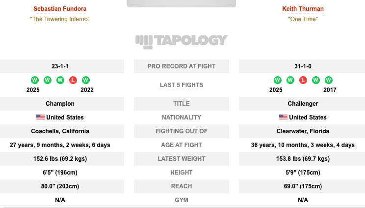 Title: Re: Fundora - Thurman WBC Super Welterweight Championship October 25, 2025 Post by: Japinat on September 27, 2025, 01:15:08 PM I just realized that Sebastian Fundora's height is 6'5" and his reach is 203 cm. I know thurman is at the advantage when it comes to experience but after knowing Fundora's height and reach, it makes me wonder how Thurman will fare against his opponent. also, I'd love to see how Fundora will take advantage of his height and reach, he could dominate this fight if he properly play around his advantages against Thurman. That’s his edge, his height and reach. But if Thurman still has his quickness, that could be the factor that gives him the win.Tim Tszyu lost twice to Fundora because he couldn’t adjust, even though he was already getting beaten badly by the jab. And honestly, while Tim Tszyu was once a champion, I never believed he was on the same caliber as Thurman. So even if Thurman comes in as a heavy underdog, I think this fight could actually humble Fundora, he’s never faced a real championship-level fighter before, someone with superstar status like Thurman during his prime. Title: Re: Fundora - Thurman WBC Super Welterweight Championship October 25, 2025 Post by: aioc on October 10, 2025, 10:46:44 PM Unfortunately the fight is postponed because Fundora suffered a hand injury during his training there is no announcemenrt of the date where the fight will resume.