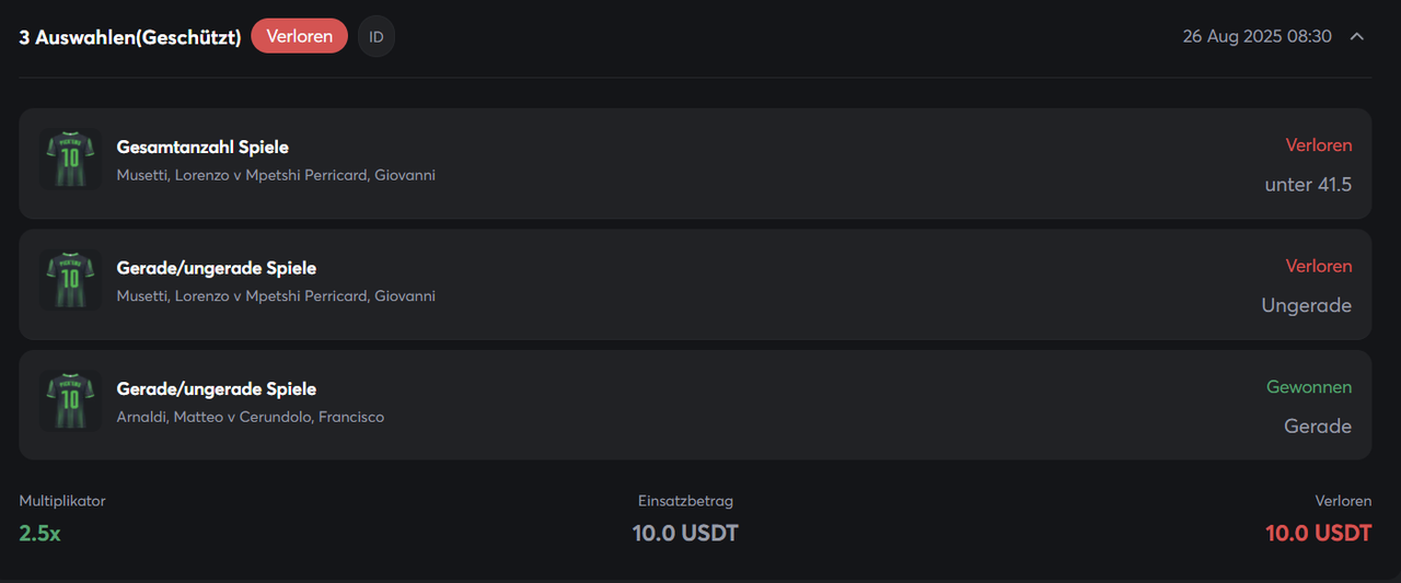 Title: Re: Sportsbet.io Pick'ems - Promo for members of Serie A and Bundesliga pools Post by: Lakai01 on August 22, 2025, 05:12:41 AM lakai01