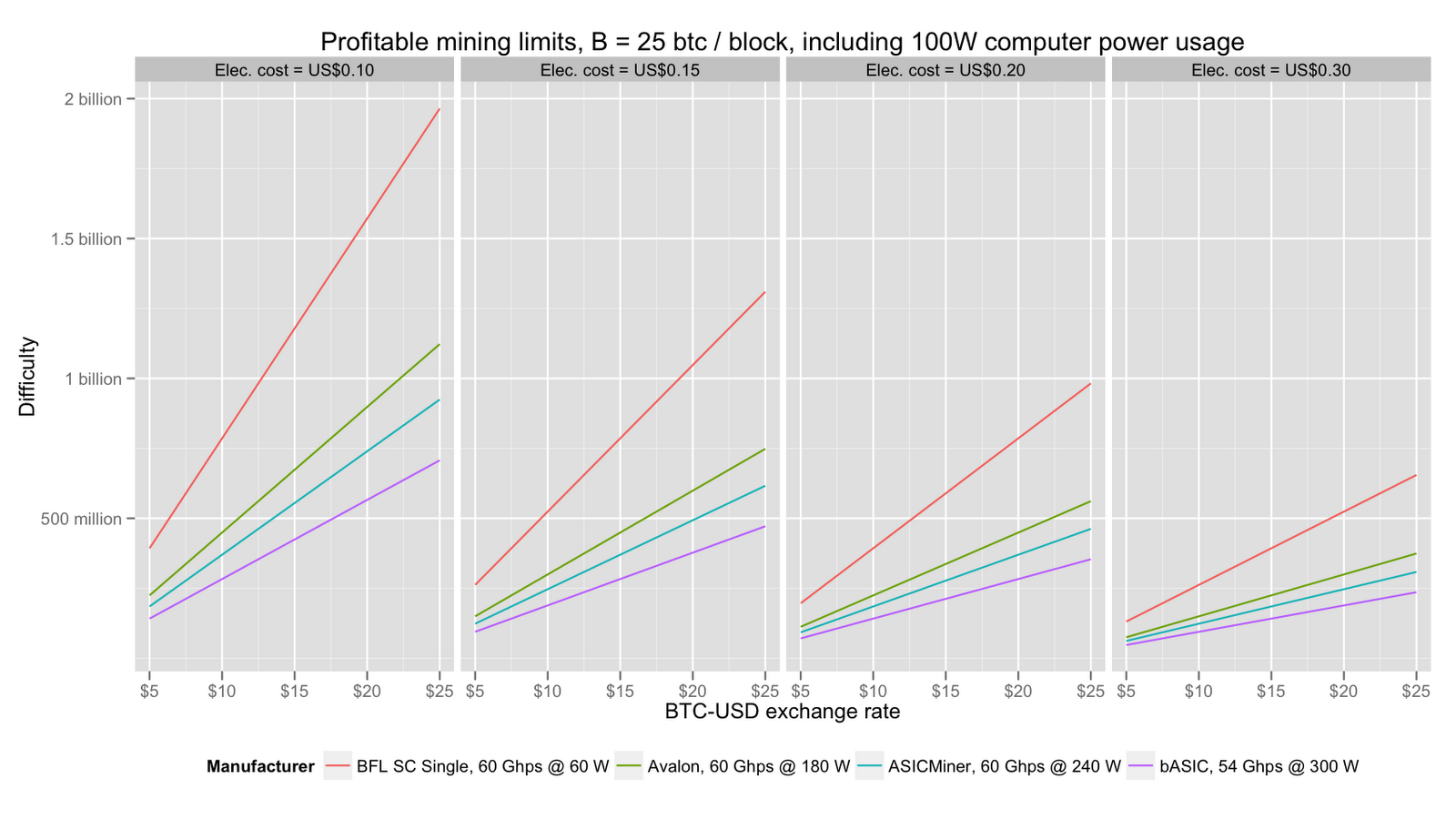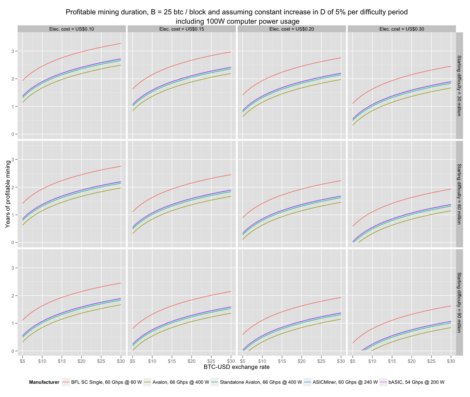 Title: Re: Neighbourhood Pool Watch 9.2 ASIC choices update 2nd November Post by: organofcorti on November 05, 2012, 08:58:05 AM Hmm ... I think it needs a big red watermark across it saying ... these numbers are fictional - don't take any notice of it. Hmmm ... I think kano didn't read the blog post: Quote Although the initial reason for the first ASIC choices post was to show miners some of the calculations that could be used to help determine which ASIC would be the right choice for their mining environment, most attention was focussed on the charts I used to illustrate the calculations. I'm kicking myself for not having used fake ASIC names and specifications but having used real devices I have a responsibility to ensure the specifications used are as correct as consensus opinion make them. Title: Re: Neighbourhood Pool Watch 9.2 ASIC choices update 2nd November Post by: kano on November 05, 2012, 04:40:58 PM Hmm ... I think it needs a big red watermark across it saying ... these numbers are fictional - don't take any notice of it. Hmmm ... I think kano didn't read the blog post: Quote Although the initial reason for the first ASIC choices post was to show miners some of the calculations that could be used to help determine which ASIC would be the right choice for their mining environment, most attention was focussed on the charts I used to illustrate the calculations. I'm kicking myself for not having used fake ASIC names and specifications but having used real devices I have a responsibility to ensure the specifications used are as correct as consensus opinion make them. Title: Re: Neighbourhood Pool Watch 9.2 ASIC choices update 2nd November Post by: organofcorti on November 05, 2012, 08:35:53 PM Hmm ... I think it needs a big red watermark across it saying ... these numbers are fictional - don't take any notice of it. Hmmm ... I think kano didn't read the blog post: Quote Although the initial reason for the first ASIC choices post was to show miners some of the calculations that could be used to help determine which ASIC would be the right choice for their mining environment, most attention was focussed on the charts I used to illustrate the calculations. I'm kicking myself for not having used fake ASIC names and specifications but having used real devices I have a responsibility to ensure the specifications used are as correct as consensus opinion make them. Alrighty then - if you're not talking about the hashrate / price / power consumption figures (which are used as examples to explain how others can make these calculations for themselves) what numbers are you talking about? If I've derived something incorrectly I'd like to know. Stop being so mysterious. Title: Re: Neighbourhood Pool Watch 9.3 More on ASIC choices Post by: organofcorti on November 06, 2012, 11:40:42 PM Yep I saw the pretty picture and that was more than enough info ... I heard you like pretty charts, so this one is dedicated to you ;) Quote Chart 1: (new) In order to read this group of charts, find the intersection of a percentage ROI and number of difficulty periods (eg. % ROI after one year is at ~ 26 difficulty periods). The colour of the tile is an indicator of the exchange rate required to meet this %ROI after the given number of difficulty periods. The faint white line along the middle of each plot indicates the break even point. Click on a chart for enlargement. http://4.bp.blogspot.com/-BDCNFtGwYnw/UJkcWy_WCxI/AAAAAAAADIA/Nrdp1JwFTPs/s1600/npw9.3.chart.avalon.rate+2012-11-07+.png More charts and more detail at http://organofcorti.blogspot.com.au/2012/11/93-more-on-asic-choices.html Title: Re: Neighbourhood Pool Watch 9.3 More on ASIC choices Post by: kano on November 07, 2012, 02:10:56 AM Yep I saw the pretty picture and that was more than enough info ... I heard you like pretty charts, so this one is dedicated to you ;) Quote Chart 1: (new) In order to read this group of charts, find the intersection of a percentage ROI and number of difficulty periods (eg. % ROI after one year is at ~ 26 difficulty periods). The colour of the tile is an indicator of the exchange rate required to meet this %ROI after the given number of difficulty periods. The faint white line along the middle of each plot indicates the break even point. Click on a chart for enlargement. http://4.bp.blogspot.com/-BDCNFtGwYnw/UJkcWy_WCxI/AAAAAAAADIA/Nrdp1JwFTPs/s1600/npw9.3.chart.avalon.rate+2012-11-07+.png More charts and more detail at http://organofcorti.blogspot.com.au/2012/11/93-more-on-asic-choices.html BFL=65nm was announced today - so the BFL figures before sound like they should be reliable at least ... Title: Re: Neighbourhood Pool Watch 9.3 More on ASIC choices Post by: organofcorti on November 07, 2012, 02:48:55 AM ............ More charts and more detail at http://organofcorti.blogspot.com.au/2012/11/93-more-on-asic-choices.html BFL=65nm was announced today - so the BFL figures before sound like they should be reliable at least ... Aha! It was the device specs you were querying, not the results. Glad we cleared that up. Also glad you liked the pretty Kanoplot. Title: Re: Neighbourhood Pool Watch 9.1 ASIC choices Post by: Aseras on November 07, 2012, 04:08:21 PM Aren't you forgetting that the BFL SC and bASIC are going to need a PC of some sort, which is going to add at least another 100 watts? The avalon is a complete standalone unit. No, I didn't forget that. The blog post does state my assumptions most clearly. I didn't know that Avalon was stand alone - and that will make a difference. Thanks for letting me know. Do you have a link to confirm this? It's always been advertised as such http://store.avalon-asic.com/ http://forum.bitsyn.com/viewtopic.php?id=5 Quote Avalon self-contained unit >= 60GH/s guaranteed. pre-order price: $1,299. note: host PC NOT required. LAN/WIFI connection required. Title: Re: Neighbourhood Pool Watch 9.3 More on ASIC choices Post by: zvs on November 07, 2012, 04:28:09 PM OK, so the thing here 