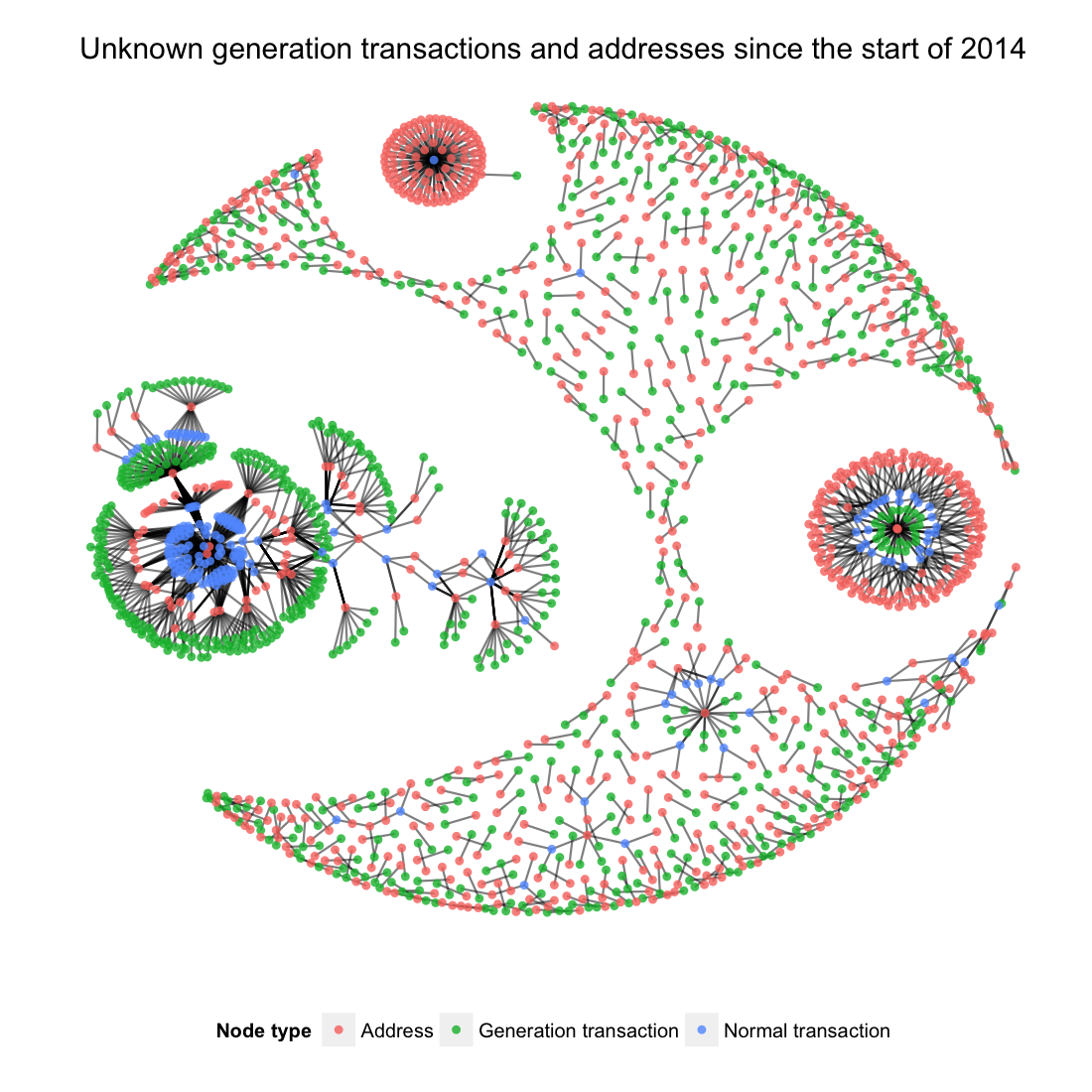 Quote Monday 17th March, 2014 Essential reading: Wikipedia entry on "Graph theory" Other posts covering similar topics: 16.3 The unknown network hashrate 16.4 Updated unknown network hashrate Other interesting links: Bitcoin Transaction Graph Analysis Quantitative Analysis of the Full Bitcoin Transaction Graph Do the rich get richer? An empirical analysis of the Bitcoin transaction network An Analysis of Anonymity in the Bitcoin System An Analysis of Anonymity in Bitcoin Using P2P Network Traffic 0. Introduction A while back in posts 16.3 and 16.4 I pointed out some of the generation addresses from sources of unknown bitcoin network hashes. My aim was not to somehow "out" smaller solominers but to attempt to find out if some of the already known hash sources might be trying to hide some of the blocks they solve in an effort to appear less threatening to the network. If some large pool was to hide some of the blocks it solves, then some miners would be losing income, and the pool could approach 50% of the network without anyone knowing. A pool that was hiding some of its solved blocks would appear to have slightly poor luck over a long period. It is not hard to detect poor luck over a long period, but you wouldn't be looking for it without a reason. And even if you did, all you could say was that public hashrate contributor 'X' had statistically unlikely luck. I wanted an indicator that was a little more clear than that; and if there was no proof tying the new sources of hashes to a pool, then I hoped to have enough information to identify some of the new hash contributors (as I did for last week for KNC) or set some bounties (as I did in posts 16.3 and 16.4). http://2.bp.blogspot.com/-ZPyZmxyuG2E/UyWWotoldFI/AAAAAAAALsA/5lIM3O715-s/s1600/followGen1.png (http://organofcorti.blogspot.com/2014/03/181-who-owns-1htm4tysxf5yzklpco6mtuunfs.html) Title: Re: Neighbourhood Pool Watch 18.1 Who owns 1HTM4TYSXF5yZKLpco6MTUUNfSBCiiwGsU ? Post by: abracadabra on March 17, 2014, 01:23:31 PM OoC, have you managed to determine which, if any of these "unknown" addresses, are Bitmain's? They claimed that their products were/are powering 20% of the network.