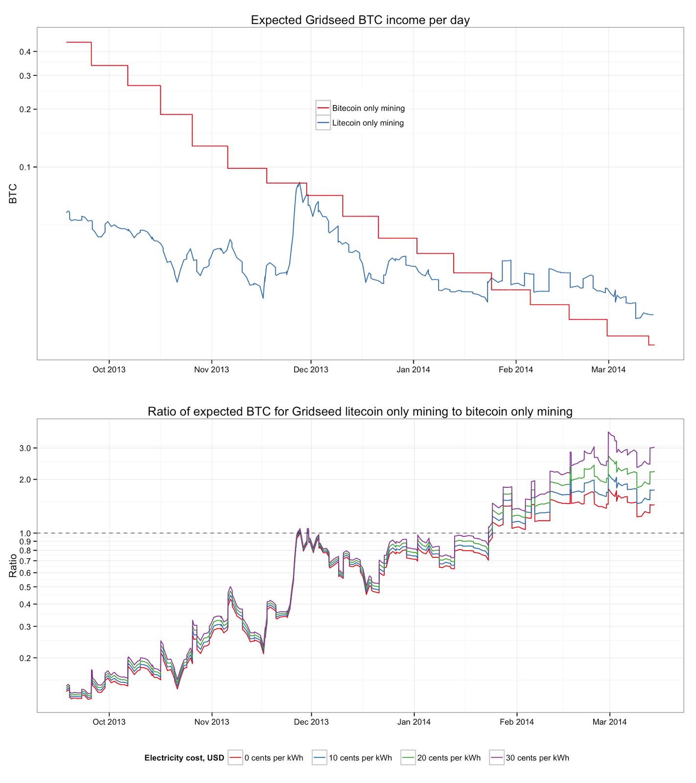 http://organofcorti.blogspot.com/2014/03/918-gridseed-should-you-mine-bitcoin-or.html Quote 0. Introduction It has been a while since I last mined, and when I heard that Gridseed ASICs could mine both bitcoin and litecoin, I decided to throw caution to the wind, ignore the fact that I may never get a return on my investment, and purchase a batch of ten through seeds over at bitcointalk.org (in case you're in the market for a Gridseed miner, I can recommend seeds: he delivered within ten days, and when I had problems setting the miners up he had an engineer help me out remotely) These ASICs can mine either bitcoin or litecoin or both simultaneously, although the point of simultaneous ltc and btc mining eludes me - surely one would simply mine whichever coin was most profitable at the time? When mining bitcoin (SHA256 mode) one device can produce 8 Ghps at 53W; mining litecoin (scrypt mode) one device can produce 300 Mhps at 7W. So, which is more profitable to mine with a Gridseed miner - bitcoin or litecoin? http://3.bp.blogspot.com/-KC2WJBlXrbE/UyRJnTFkbCI/AAAAAAAALq0/wGzamJZyJu4/s1600/gridseed2.png (http://organofcorti.blogspot.com/2014/03/918-gridseed-should-you-mine-bitcoin-or.html) Title: Re: Neighbourhood Pool Watch 18.1 Who owns 1HTM4TYSXF5yZKLpco6MTUUNfSBCiiwGsU ? Post by: organofcorti on March 17, 2014, 09:36:19 AM Neighbourhood Pool Watch 18.1 Who owns 1HTM4TYSXF5yZKLpco6MTUUNfSBCiiwGsU ? (http://organofcorti.blogspot.com/2014/03/181-who-owns-1htm4tysxf5yzklpco6mtuunfs.html)