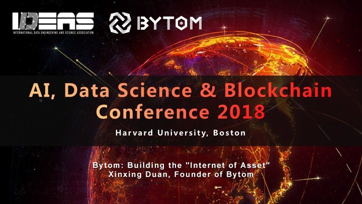 Time to #ROLL ! https://medium.com/@Bytom_Official/bytoms-first-step-of-asset-blockchainization-bytom-reached-strategic-cooperation-with-east-lake-3ed2624c8686 (https://medium.com/@Bytom_Official/bytoms-first-step-of-asset-blockchainization-bytom-reached-strategic-cooperation-with-east-lake-3ed2624c8686) https://cdn-images-1.medium.com/max/800/1*dUQXo6A8B5sUehV5YJwUsQ@2x.jpeg Title: Re: 【ANN】Bytom-Transfer assets from atomic world to byteworld Post by: Bytom_official on April 16, 2018, 06:19:42 AM April 14th Bytom was invited to "AI,data science&blockchain conference" at @Harvard