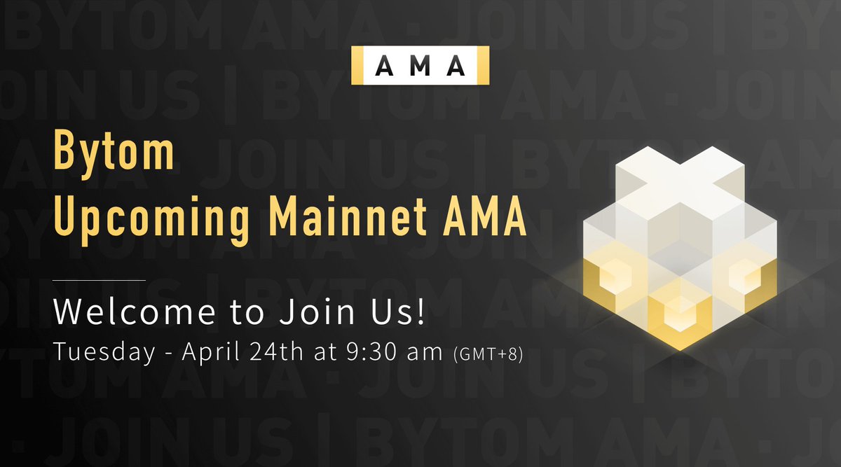 Any questions #development #general related feel free to ask! https://www.reddit.com/r/BytomBlockchain/comments/8e0si4/bytom_upcoming_mainnet_ama/ (https://www.reddit.com/r/BytomBlockchain/comments/8e0si4/bytom_upcoming_mainnet_ama/) Title: Re: 【ANN】Bytom-Transfer assets from atomic world to byteworld Post by: Bytom_official on April 23, 2018, 01:10:42 AM We are holding an Reddit AMA on April 24th, 2018 9:30am (GMT +8).This AMA will last for 3hrs. We will put together a great team of Founder, CTO, engineers, and marketing staff for this event!