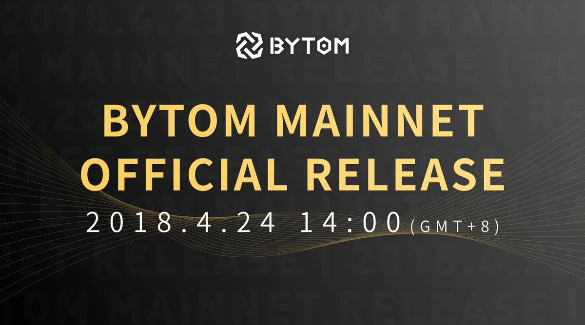 Title: Re: 【ANN】Bytom-Transfer assets from atomic world to byteworld Post by: Bytom_official on April 23, 2018, 06:32:10 AM Breaking News: Bytom Mainnet will be officially LAUNCHED in 24hours, April.24th at 14pm (GMT+8)!!