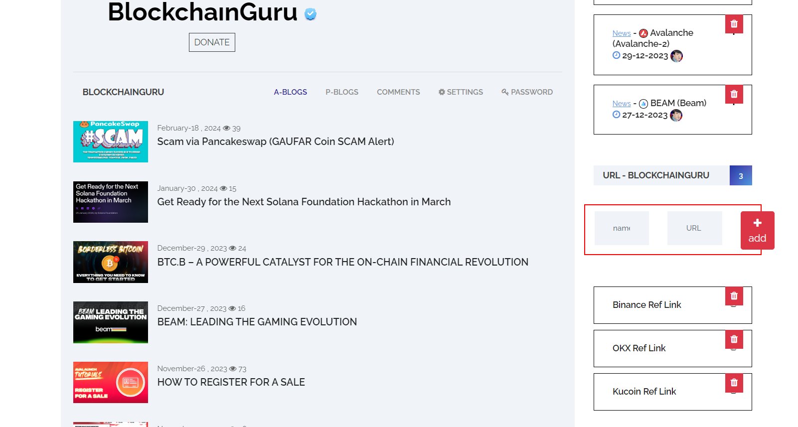 Every Newx and Blog you post is listed under its cryptocurrency name and can be accessed directly by other users.