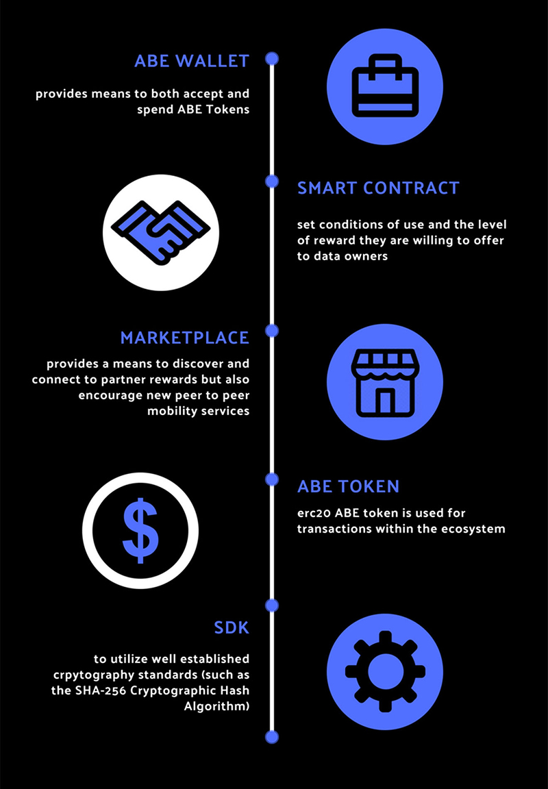 Based on Ethereum, the ABE Token will be used for transactions within the ecosystem.