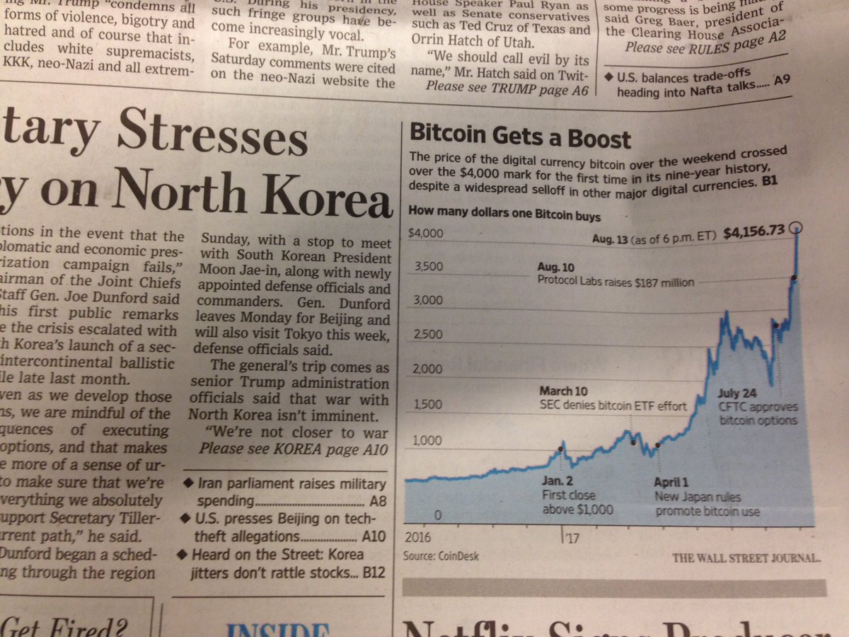 έχουμε νέο spike και πάμε ολοταχώς να σπάσουμε τα 4500$ και μπορεί να είναι αυτός ο γύρος που θα πιάσουμε τα 5k. Πάντως σήμερα το bloomberg είπε ότι είμαστε κοντά και στο sec να επιτρέψει ένα bitcoin ETF. Από τι φαίνεται όσο συντηρητικός είναι ο Trump οι άνθρωποι που είναι γύρω του στα θέματα της οικονομίας είναι αρκετά ποιο liberal https://twitter.com/business/status/900863074269249536