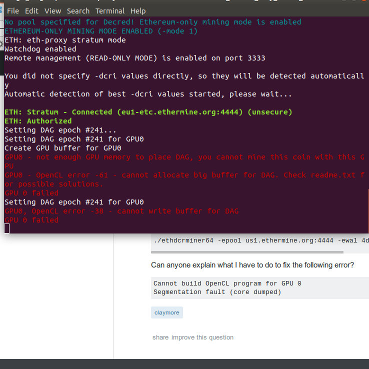 Hi all...I have linux Ubuntu 18.04 11 GB ram Intel® Core™ i5-3330 CPU @ 3.00GHz × 4 500 GB harrdisk 1 4GB RX 550 AMD GPU but I cant mine.here are the error messages.I was mining with w10 but i switced to linux i cant now.Also ubuntu says that my 4 GB card is 3100 mb i installed amd gpro drivers 18.50...i also cant write these settings too to the miner GPU_FORCE_64BIT_PTR 0 GPU_MAX_HEAP_SIZE 100 GPU_USE_SYNC_OBJECTS 1 GPU_MAX_ALLOC_PERCENT 100 GPU_SINGLE_ALLOC_PERCENT 100 pls help guys,thx https://i.postimg.cc/Fzy9JnfC/asd.pnghttps://i.postimg.cc/vHTqTxpf/asd2.png