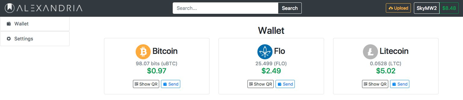 In the long run we'd like to integrate a decentralized exchange (one of the various -DEX networks) into Alexandria because it would facilitate any currency supported on that DEX. Buying media with FLO would still take fewer steps. That's a built-in advantage of using our blockchain. That’s sounds great Joseph, I hope everyone uses FLO. But when I see litecoin instead of bitcoin cash it tells me you’re betting on cross-chain atomic unicorn swaps in the future instead of 1 cent on-chain transactions with optional fees now. I wonder what the calculus is. Because Alexandria uses the Coinbase widget and Coinbase offers litecoin?