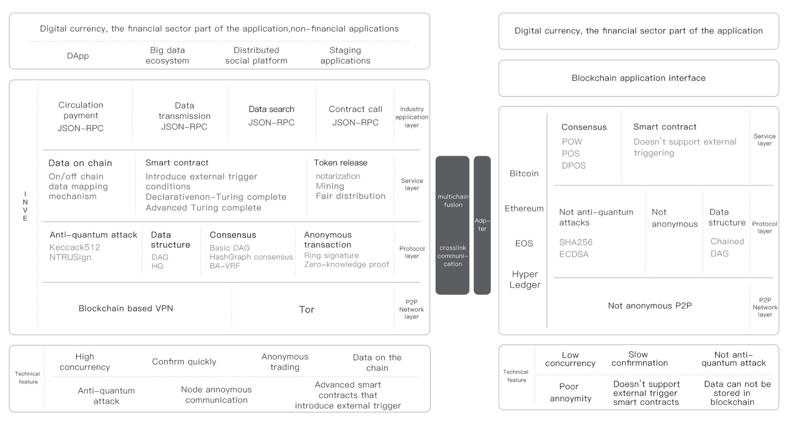 (4)At the Layer of anti-quantum attackNew anti-quantum algorithms are adopted, which replaces the existing SHA series algorithm with the Keccak-512 hash algorithm, and replaces the ECDSA signature algorithm with an integer lattice-based NTRUsign signature algorithm. These algorithms reduce the threat which brings from the quantum computing development and gradual popularization of a quantum computer.