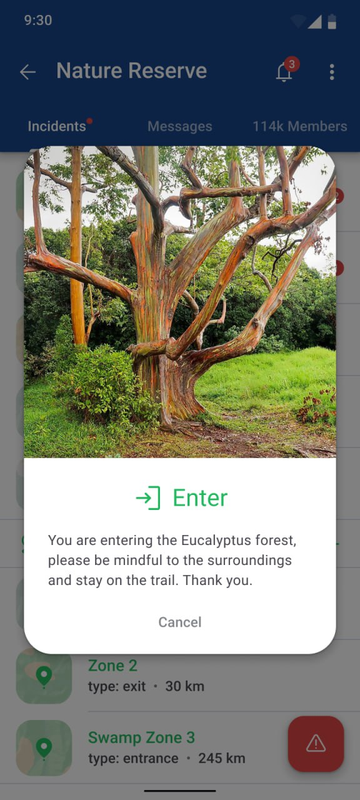 Use case: Natural parks and nature reservesA single dispatch center enables park managers to track the movements of all visitors and personnel, receive incident alerts, coordinate interactions, and send messages.
