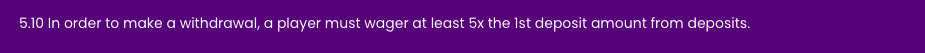 I have been playing around few gambling site I never came across this with 5x wagering before one could withdraw their deposit is very bad you know. This is why is always advisable to read terms of service before making deposit most especially when your deposit amount is so high that you wish to have some withdrawal from your deposited amount. This simply means that if you don't place some bets you won't be able to withdraw your funds from site and i want to know is this your first time of signing up with this platform?