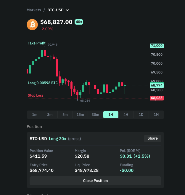 Yes, taking small profits from a bitcoin investment won't give us much. If we plan to invest for the long term, then booking a small profit indicates greediness. Bitcoin investors should hold their coins for years without selling anything. I used to book small profits in start but later I realized the mistake, I was planning to hold for the 2024 bull run. When I said we should book profit and should not wait longer, it is for those who day trade, not hold for the long term. Because if someone is in day or swing trading but they are new, they will show greediness when their trade makes them a profit, as they seek more profit and lose it all. It contradicts long term investment to taking profit. The author is doing a future trading which means he is on a short term trading due to leverage so a small price movement on Bitcoin will already resulted to good profit. I assume it’s Futures trading since he mentioned opening long position at 65K. He should be buying Bitcoin on spot price if the goal is going long term investment. It doesn’t make sense to hold futures position long term due to the funding fee.