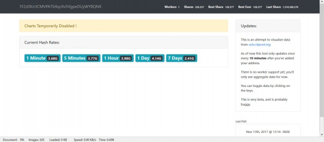 In case it wasn't clear, this works just like solo.ckpool.org stats: https://visual-ckpool.herokuapp.com/users/<YOUR ADDRESS> If you simply put a COMMA after ever 3 numbers i.e. 2,988,020,218 to make reading best share faster I'd offer up my first 3 gfs as slaves to you. Such a simple thing can mean so much. *Disclaimer: Girls may or may not have attitude problems for you to sort out.